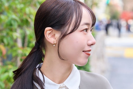 アクセサリーはパールでやわらかく。