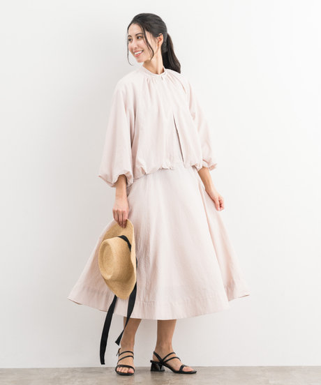 1枚だとカジュアルなブルゾンはフェミニンなワンピースと重ねて上品で大人かわいい雰囲気に。