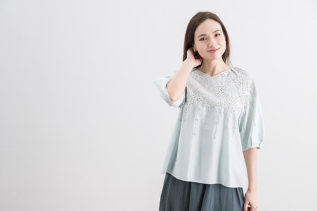 そんな気持ちに応える、体系カバーもできる洒落見えブラウス。