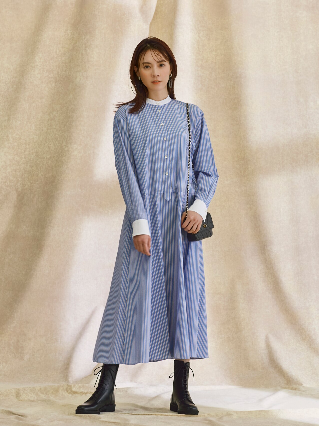 すっきりとしたワンピースのシルエットを際立たせたいから、小物は抑えてシンプルに。大人になった今だから引き算コーデも怖くない。