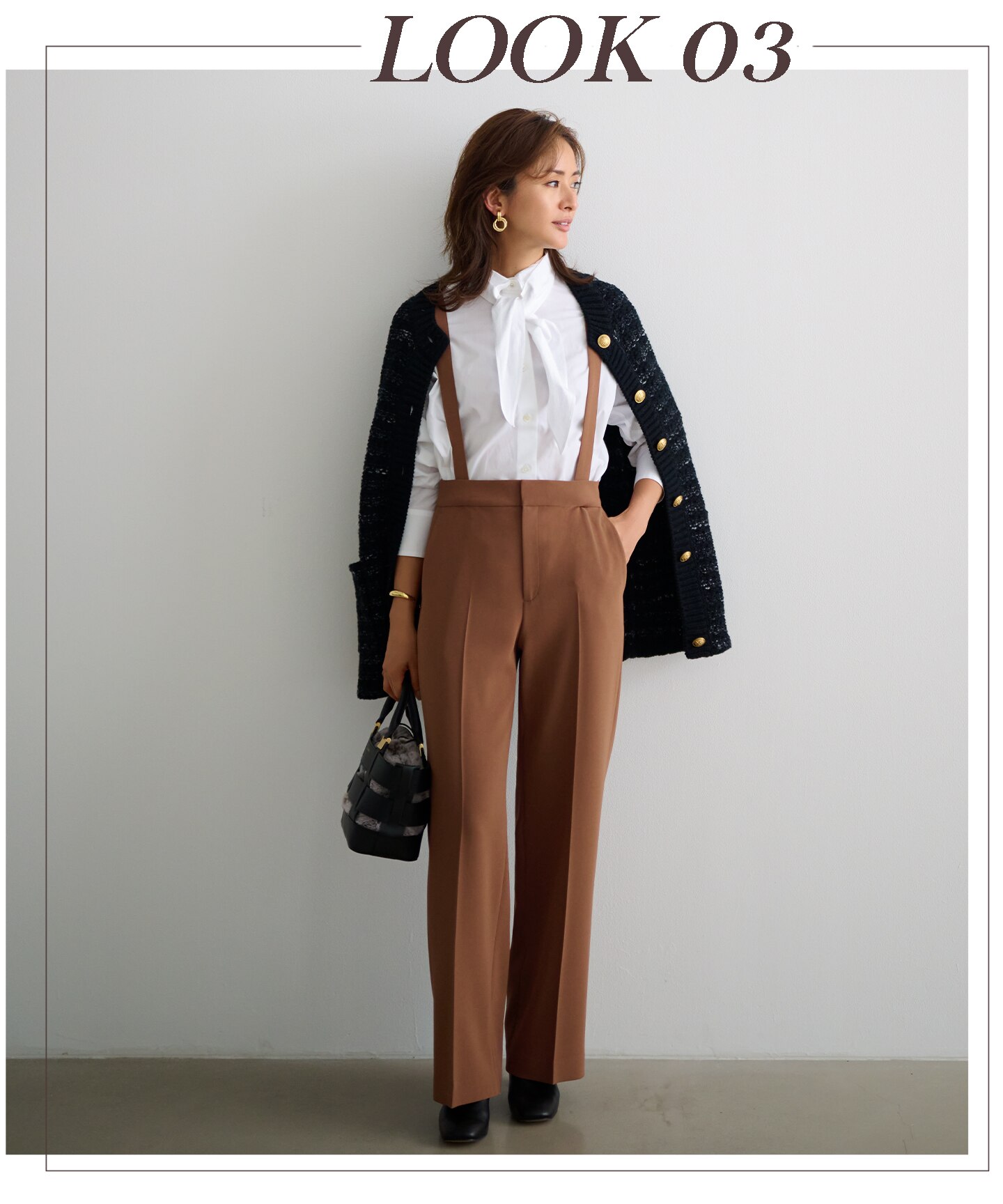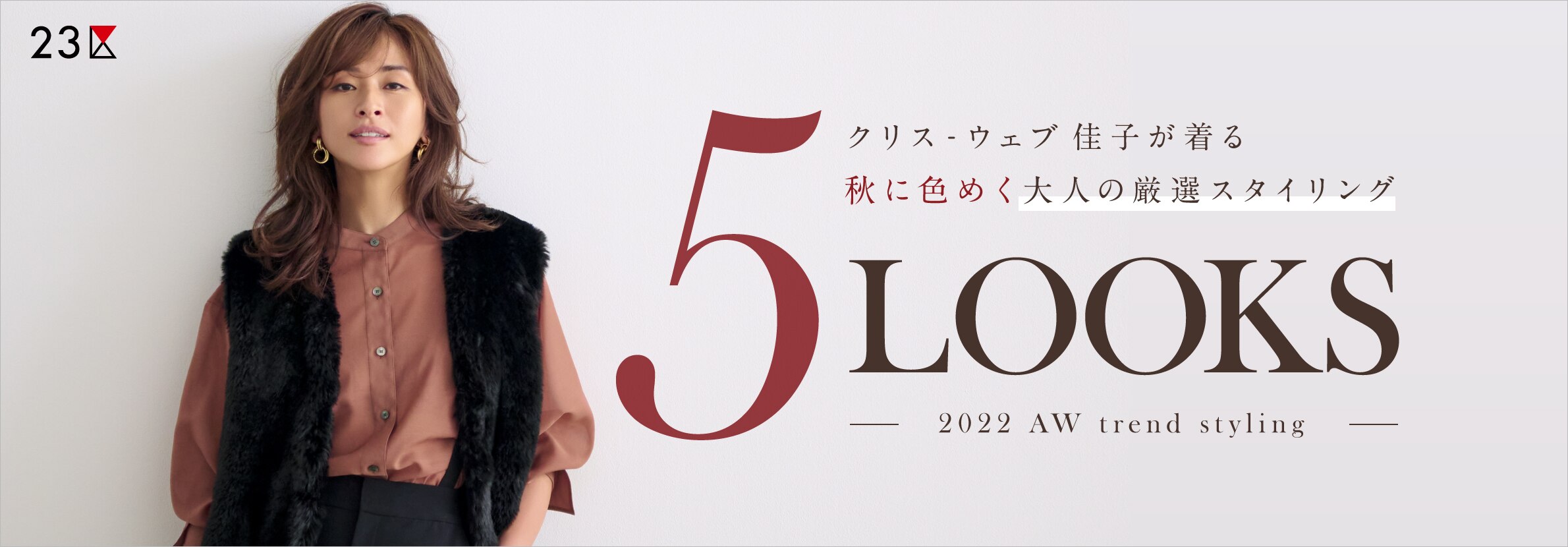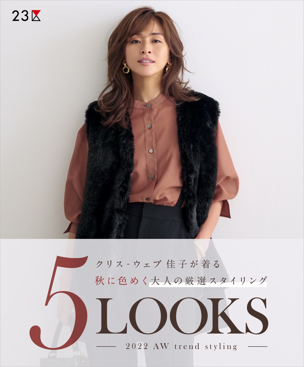 ファー×シアーの素材のギャップが新たな表情を生む。レイヤードを楽しむ余裕が大人の魅力。 ジレ ¥36,300(税込)~ XS M XL シャツ ¥26,400(税込) ~ XS M XL~ パンツ ¥23,100(税込) ~ ~XS S,M,L XL~ そのほかのアイテムはこちら + ー イヤリング¥6,600(税込) DETAIL バングル¥8,800(税込) DETAIL シューズ¥41,800(税込) DETAIL 正統派なブルーシャツは遊びを加えた変化球スタイルに。ファッションへの探求心が私をクラスアップさせる。 シャツ ¥16,940(税込) ~ XS,S S,M,L XL~ カットソー ¥11,990(税込) ~ XS M,L XL~ パンツ ¥24,200(税込) ~ ~XS S,M,L XL~ そのほかのアイテムはこちら + ー サングラス¥6,600(税込) DETAIL イヤリング¥6,600(税込) DETAIL ネックレス¥8,800(税込) DETAIL シューズ¥39,600(税込) DETAIL 襟元を飾り立てるスカーフディテールは優美さを与えてくれる。トラッドな着こなしも、ほら、どこか女っぽい。 ニットジャケット ¥34,100(税込) ~ XS M XL,XXL スカーフシャツ ¥19,910(税込) ~ ~XS M XL~ パンツ ¥23,100(税込) ~ XS S,M,L XL~ そのほかのアイテムはこちら + ー イヤリング¥6,600(税込) DETAIL バングル¥8,800(税込) DETAIL バッグ¥24,200(税込) DETAIL シューズ¥41,800(税込) DETAIL 大人の女性をイメージさせる“赤”。カジュアルなスタイルに覗かせるだけでデイリーなのに特別な佇まい。 シャツ ¥16,940(税込) ~ XS,S S,M,L XL~ ニット ¥15,950(税込) ~ XS M,L XL~ パンツ ¥19,910(税込) ~ ~XS S,M,L XL~ そのほかのアイテムはこちら + ー ピアス¥6,600(税込) DETAIL ネックレス¥11,990(税込) DETAIL バッグ¥14,960(税込) DETAIL 柄×柄のワンツーコーデ。レパートリーに加えてふり幅のある自分へ。つなぎのブラックでスパイスを効かせて。 ジャケット ¥49,500(税込) ~ ~XS S,M,L XL~ ワンピース ¥36,300(税込) ~ XS,XXS M,L XL~ カーディガン ¥19,910(税込) ~ XS M,L XL~ そのほかのアイテムはこちら + ー ピアス¥6,600(税込) DETAIL バッグ¥17,930(税込) DETAIL 掲載商品はこちら 23区 ONLINE STORE