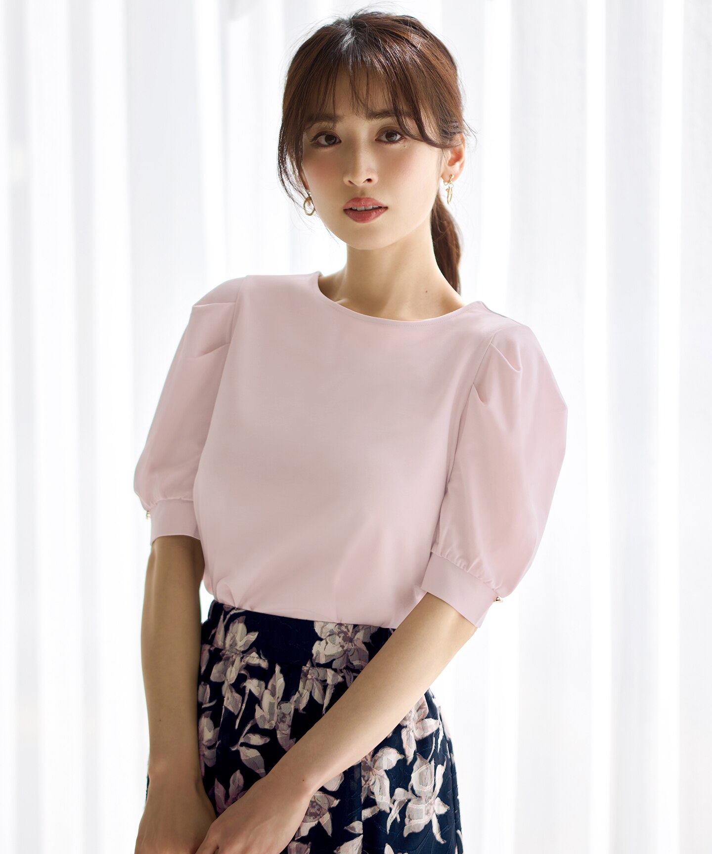 トレンドのパフスリーブできれいめ見えするカットソーは、滑らかで軽い着心地が嬉しい♪