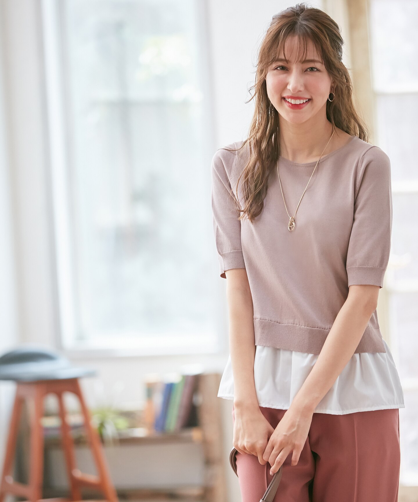 1枚でレイヤード風スタイルが完成するニットTシャツ。