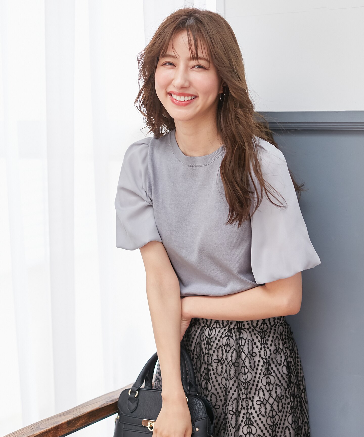 肩や二の腕をふんわり包みこむパフスリーブは、清楚にきめたいレディにいちおしのディテール。