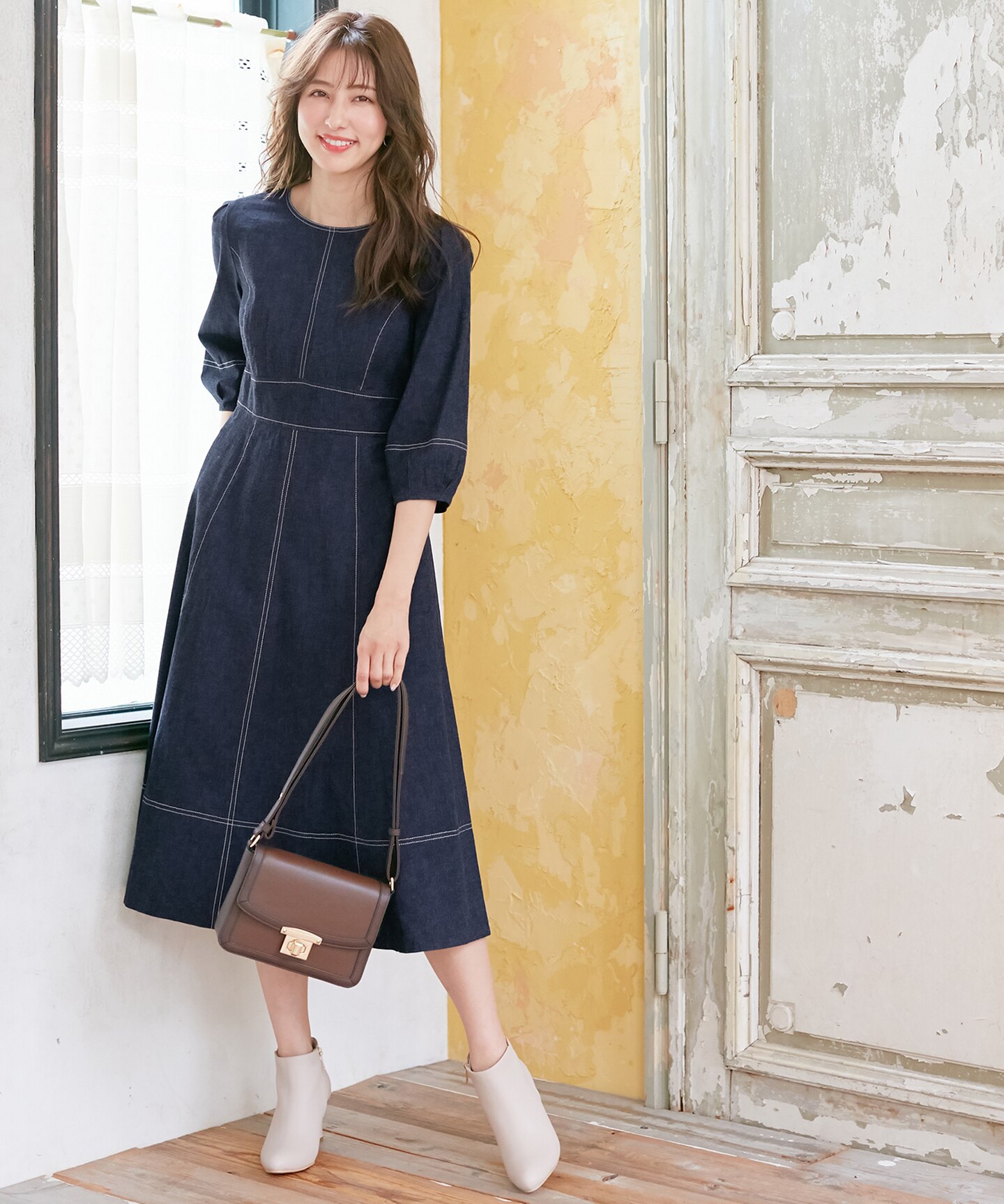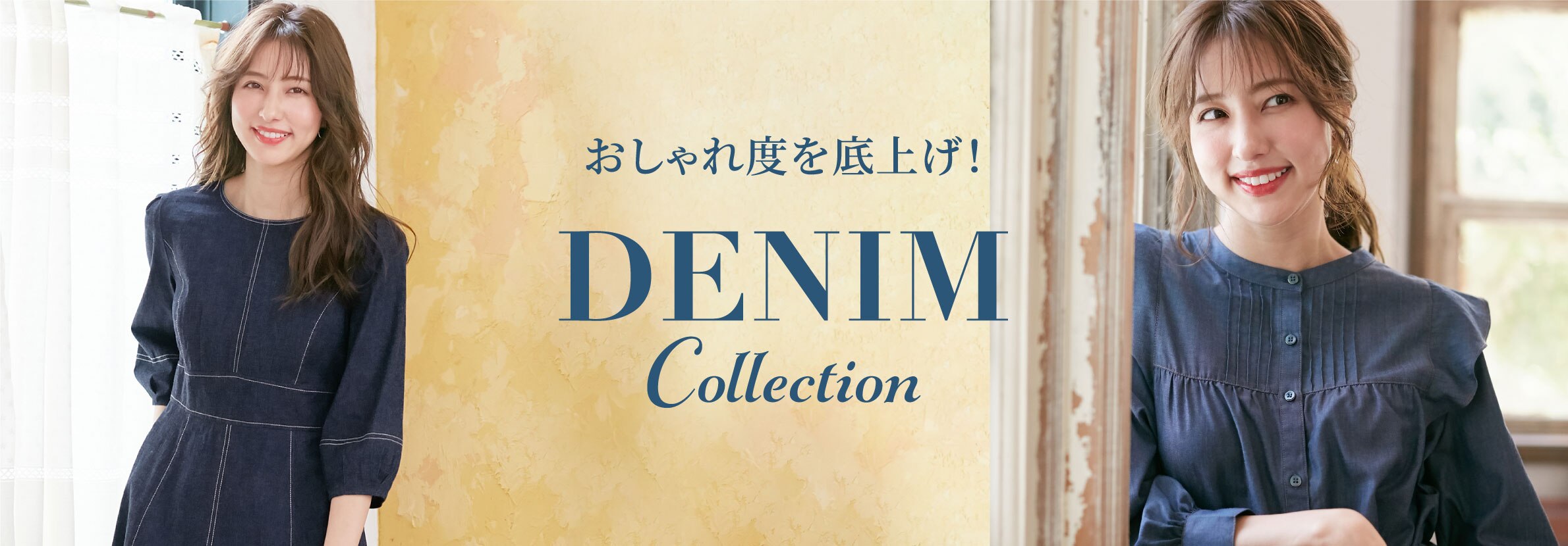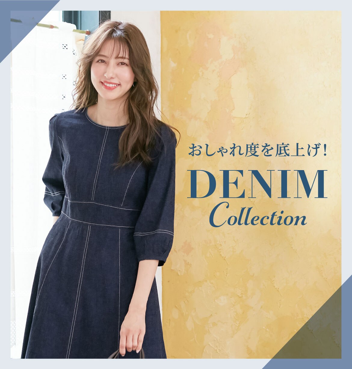 デニムワンピもカジュアルになりすぎず、フェミニンな印象に。