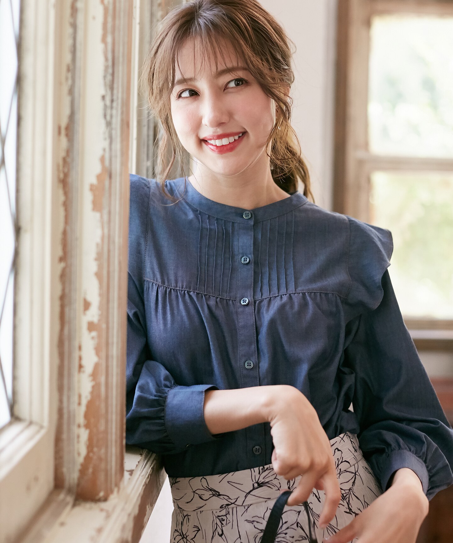 ピンタックとフリルデザインで顔回りを程よく盛れるのがポイント。