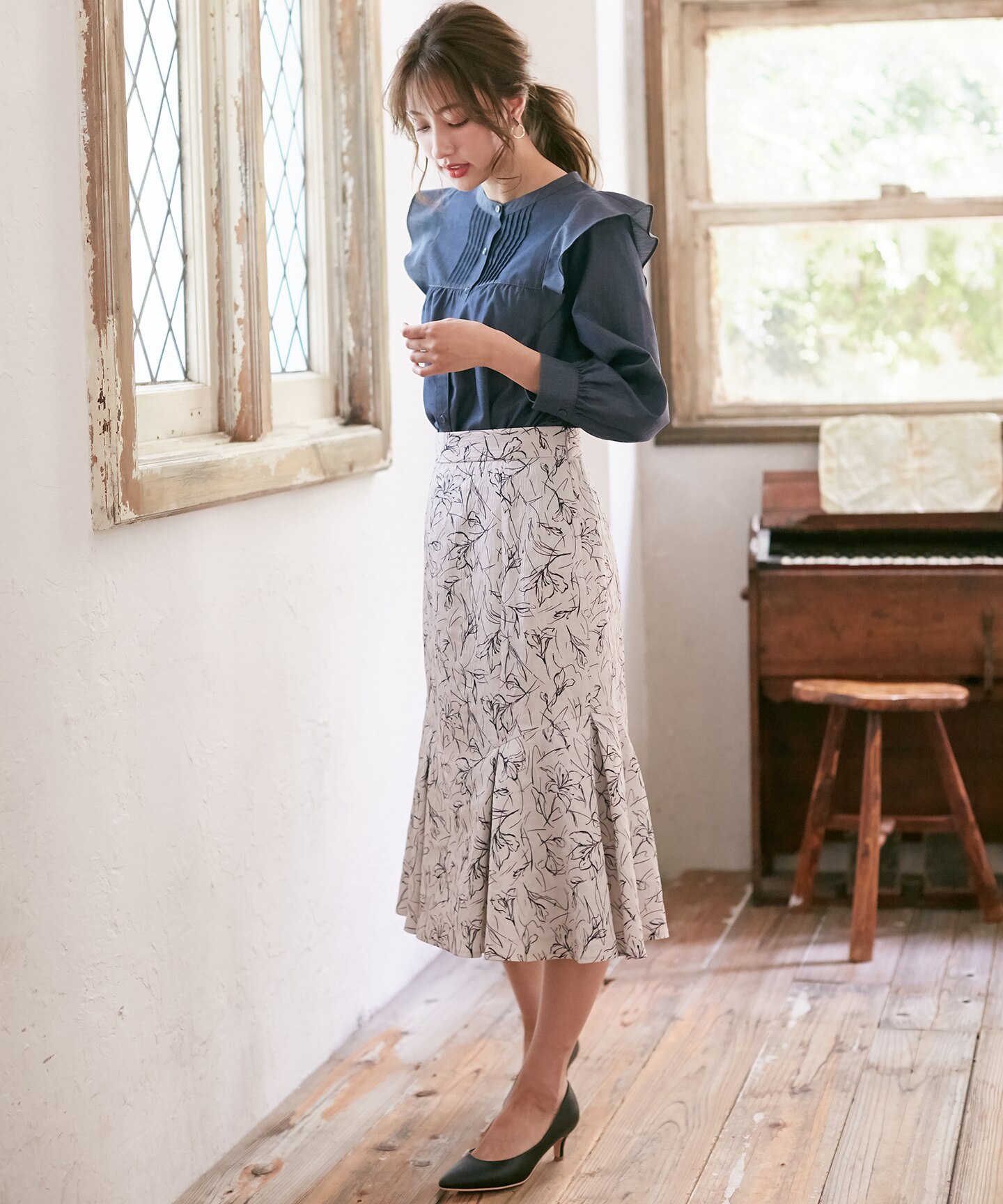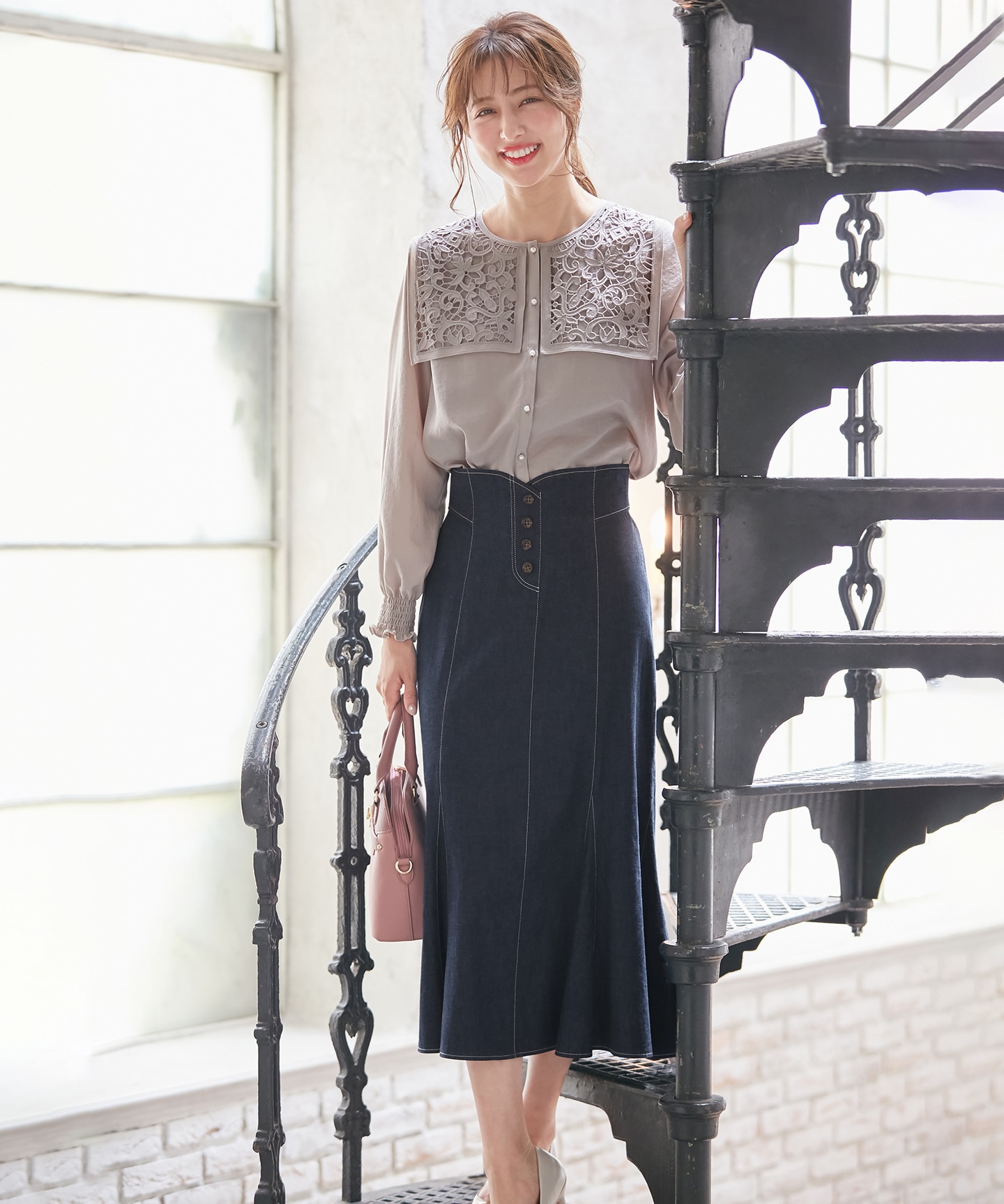 ハイウエスト&程よいフィット感で女性らしさ満点のマーメイドシルエット。