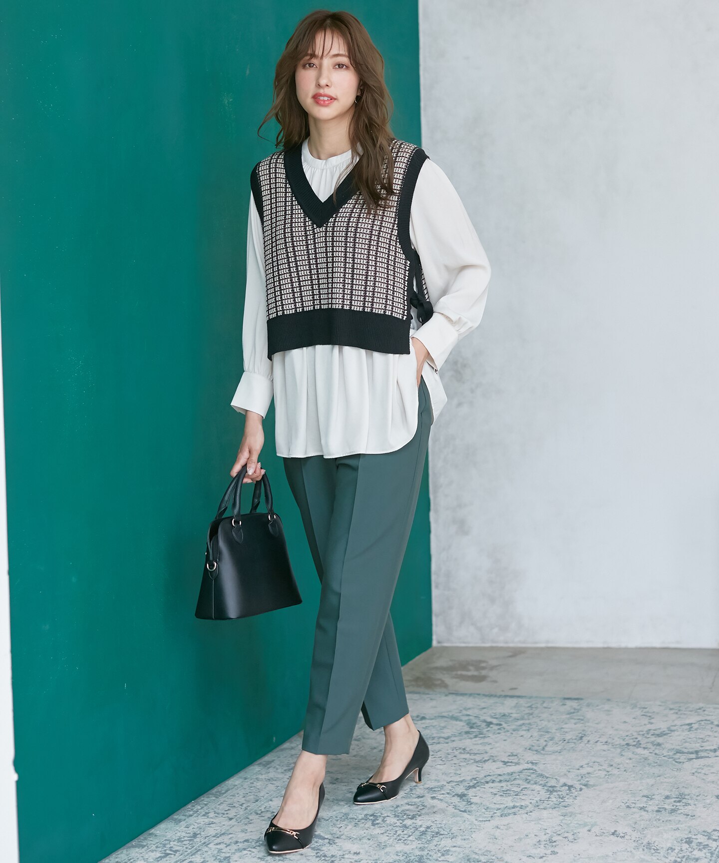 ブラウス×ニットベスト