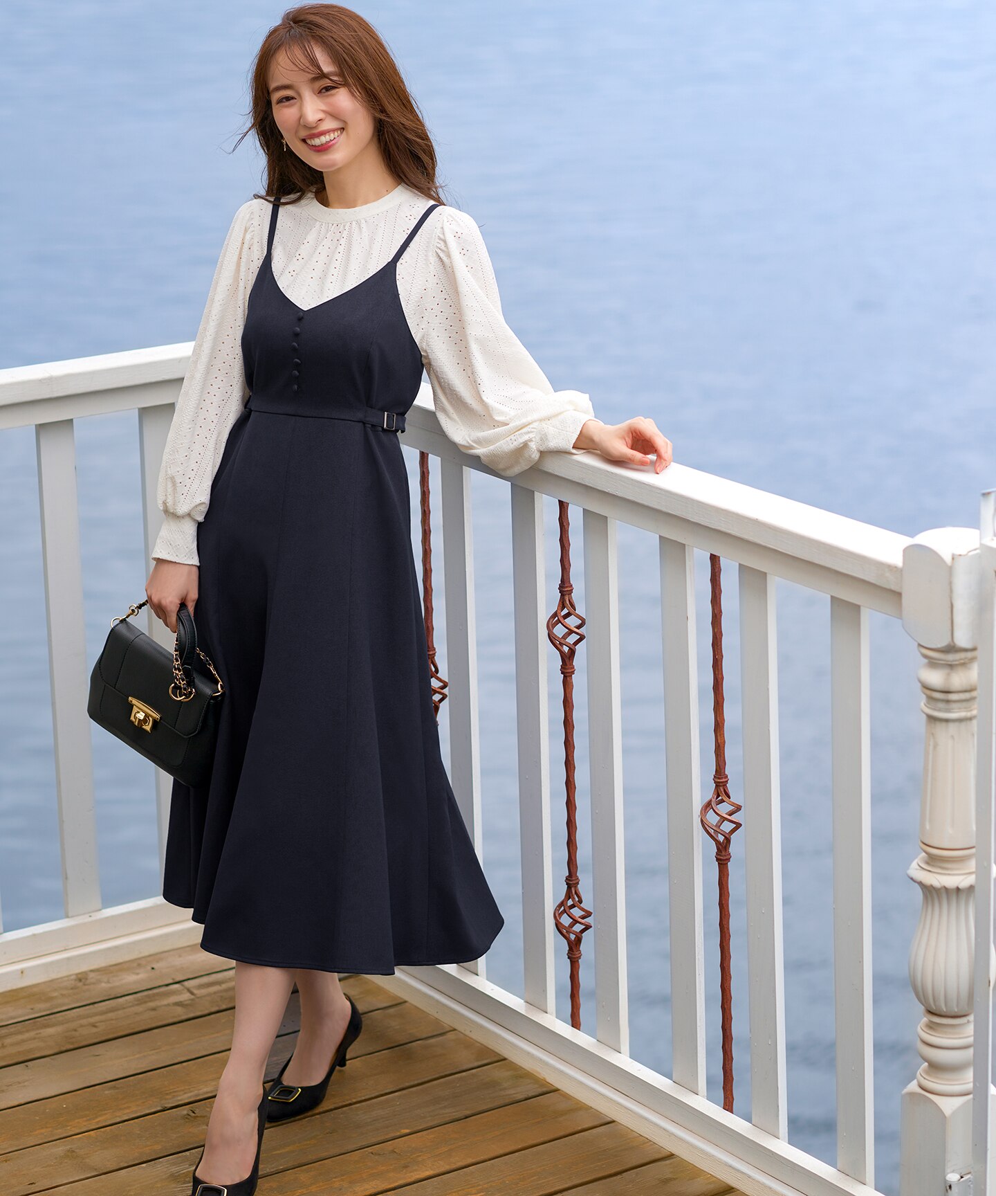 ウールライクでほんのり温かみのある素材感を使用した、甘さ控えめなキャミワンピース。