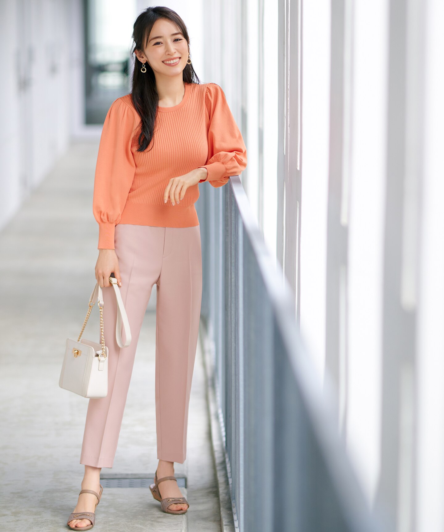 トレンド感のあるオレンジカラーは、血色感のある柔らかな色味で女性らしく♡