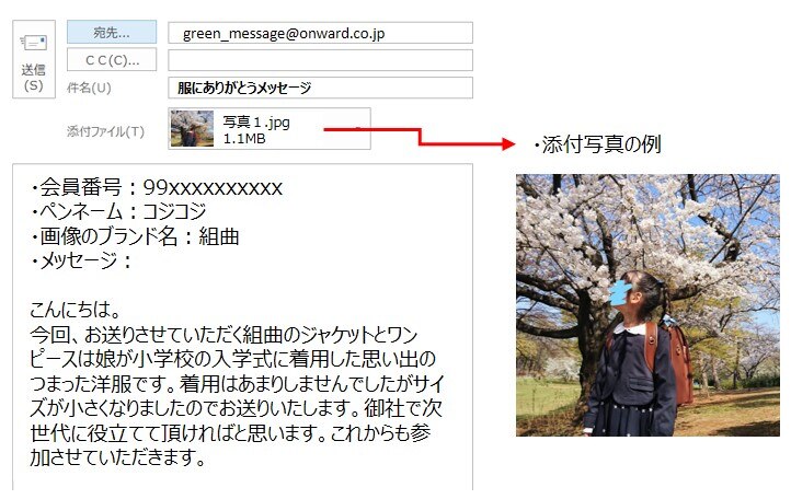 - ・件名(タイトル):服にありがとうメッセージ