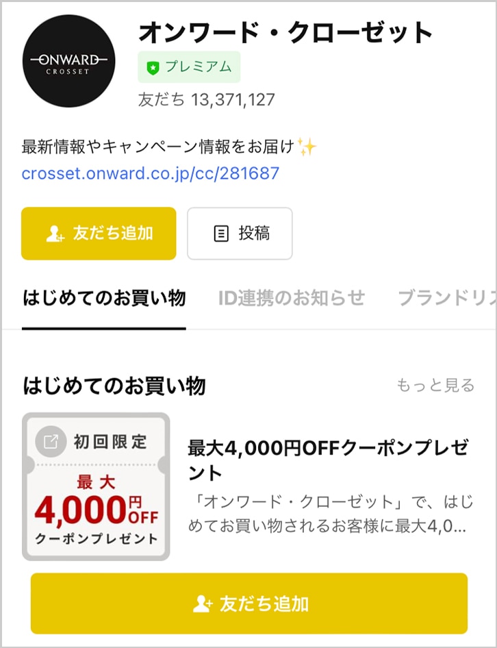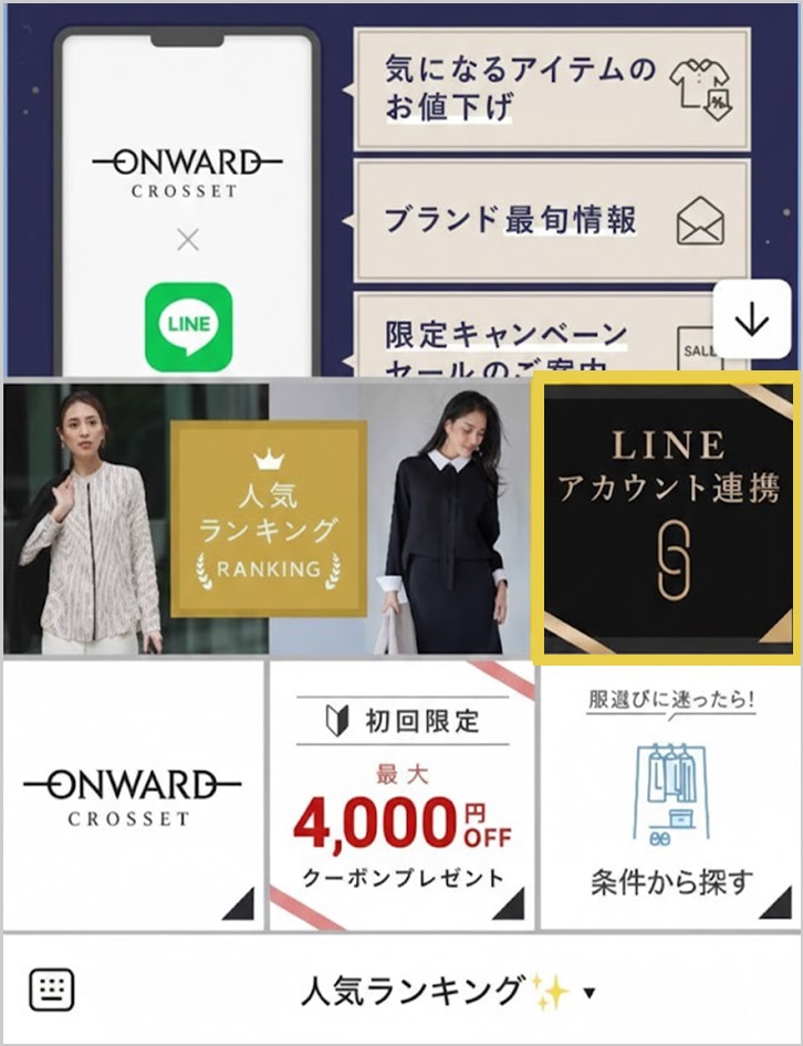 ※本キャンペーンは2026年3月3日(火)23:59時点でオンワードメルマガ登録、もしくはLINE ID連携されている方が対象です。すでに登録・連携されている方、期間中にメルマガ・LINE ID連携を解除された方、再登録・再連携された方はキャンペーンの対象外となります。