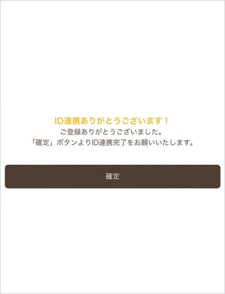 完了画面が表示されたら「確定」をタップいただくと、ID連携完了となります。