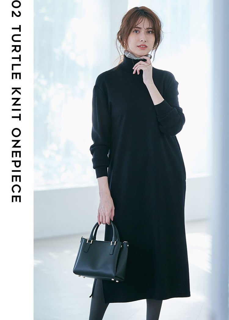 タートルネックニットワンピース