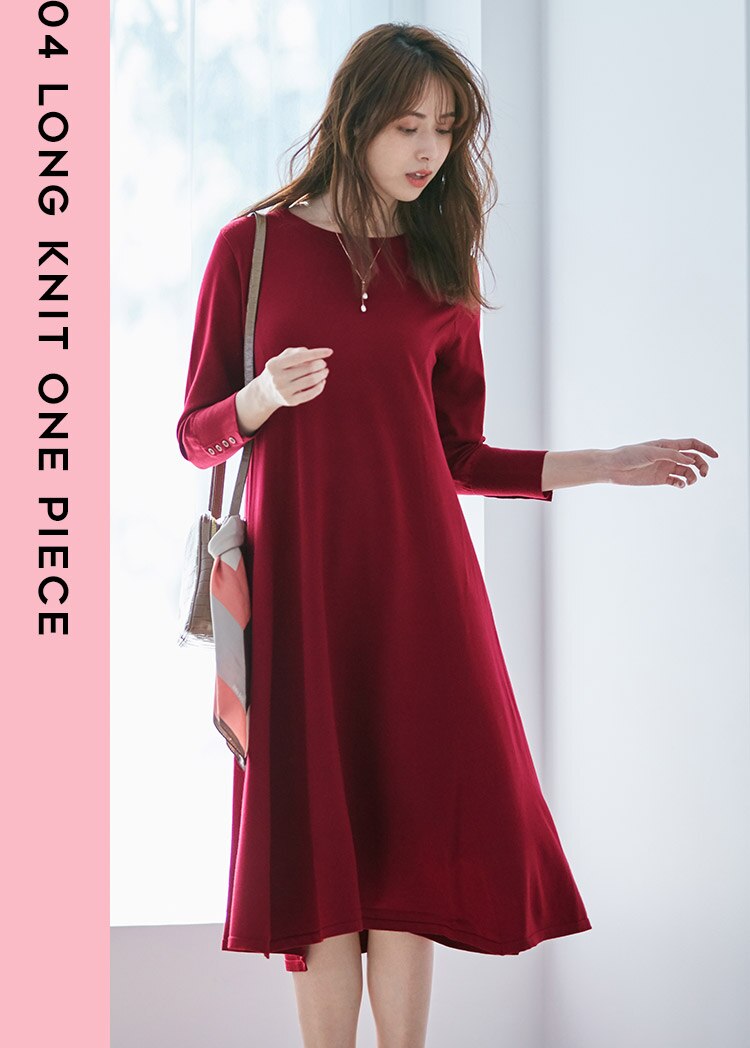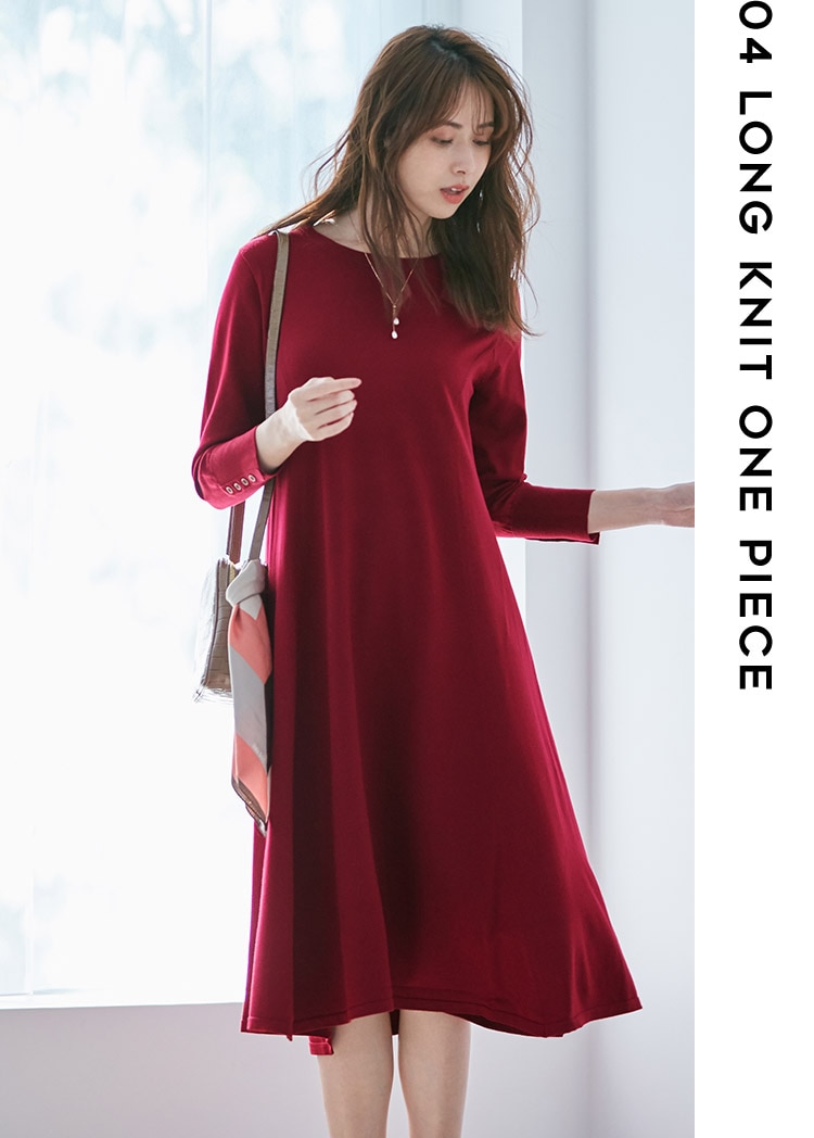 いくつあってもいい、1枚で完結するしなやかで美しいラインのニットワンピース。動くたび揺れる裾がエレガントな雰囲気を、ラズベリーカラーが愛らしさを引き出します。ネックレスやスカーフ使いで遊び心をプラスして。