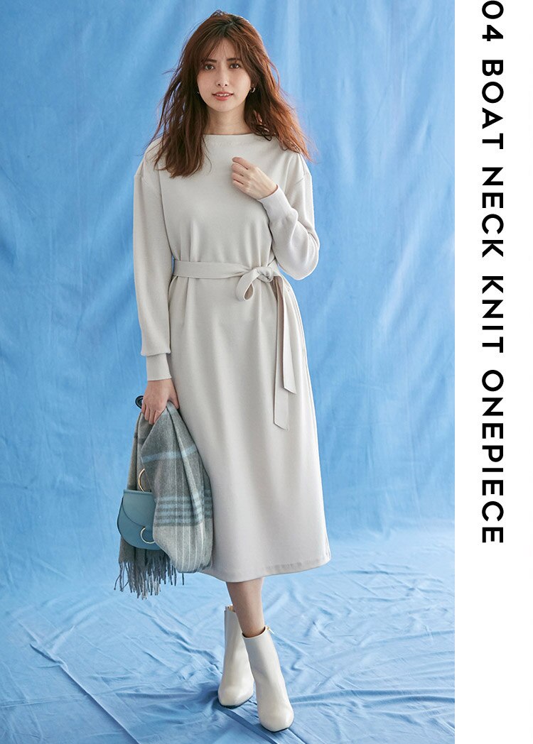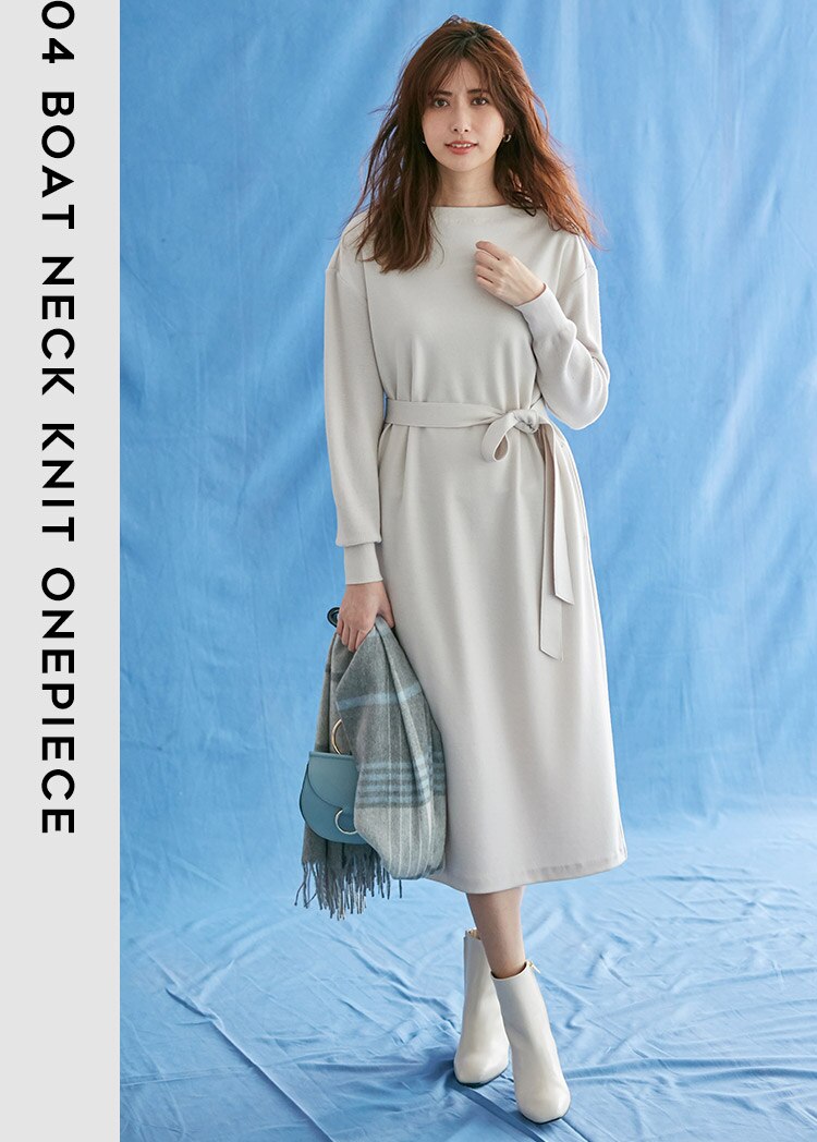 ボートネックニットワンピース