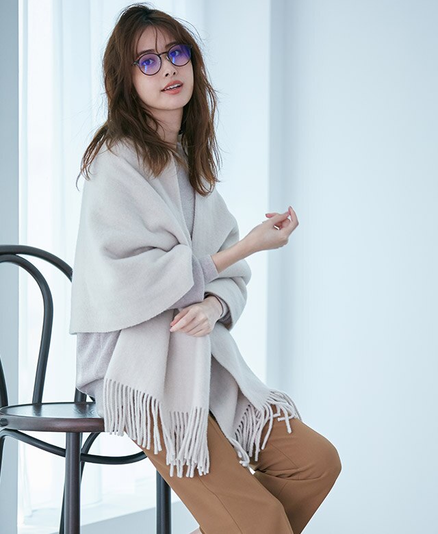 一枚でも存在感大なニットは柔らかい印象ながらも、どことなくおしゃれな雰囲気に。
