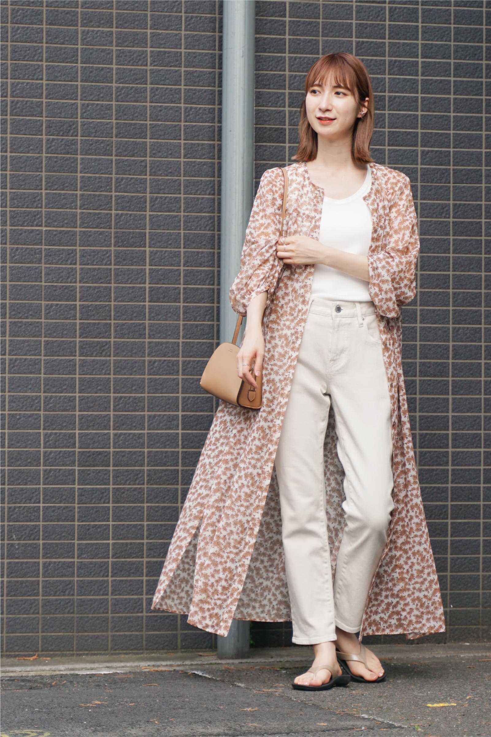 スタッフコーデはこちら今年らしい透け感とほんのりレトロなフラワープリントが女性らしさを引き出してくれる一枚。軽やかなワンピースは羽織にして、デニムを合わせると程よくフェミニンな印象に。歩くたびに揺れるシルエットが、シンプルなスタイルをぐっとおしゃれに見せてくれます。