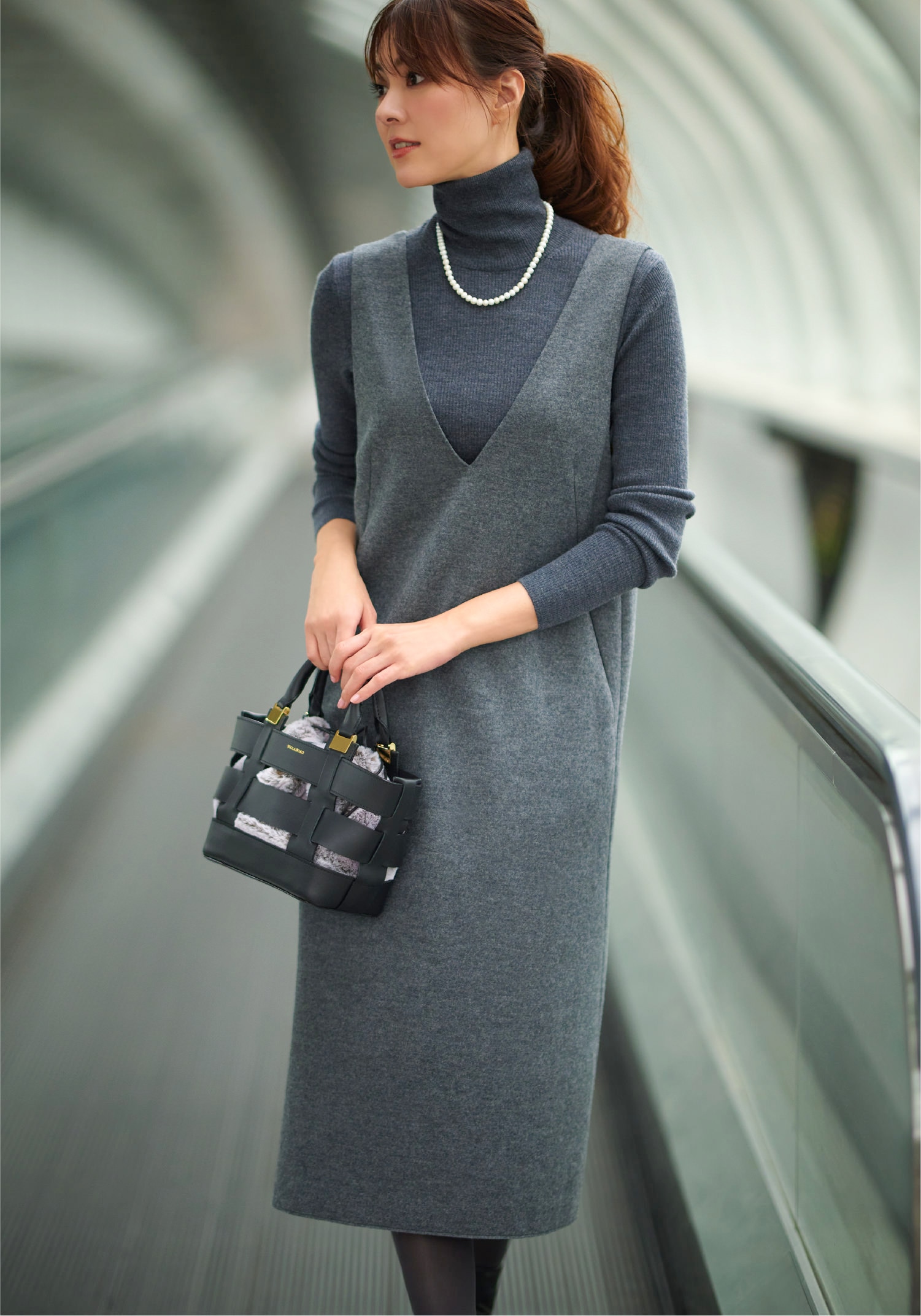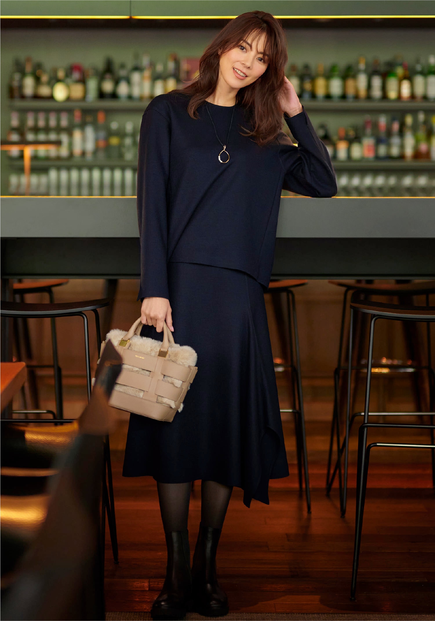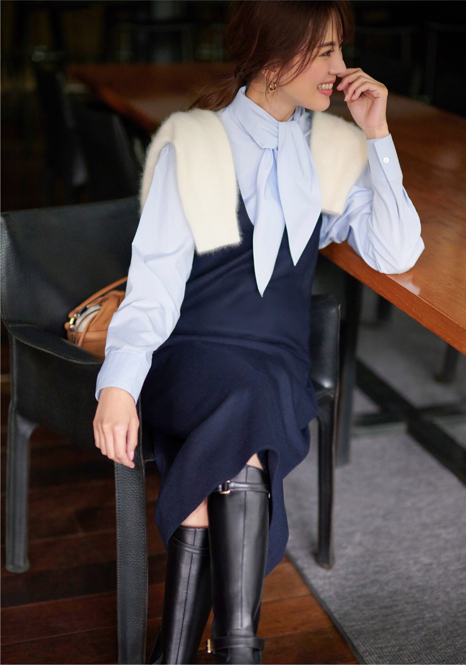 小物を効かせ上品にまとめる。