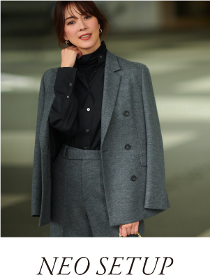 セットアップ使いはもちろんのこと単品の着回し力も高く、シーンレスで活躍してくれるネオセットアップ。ウール圧縮のジャージー素材ならではの存在感が最大の特徴で、表情豊かな着こなしを実現してくれる。ジャケット・パンツ・スカート・ブラウス・ワンピ―ス2タイプの計6アイテムをご用意。カラーは大人に似合うチャコールグレート凛としたネイビーの2色展開。