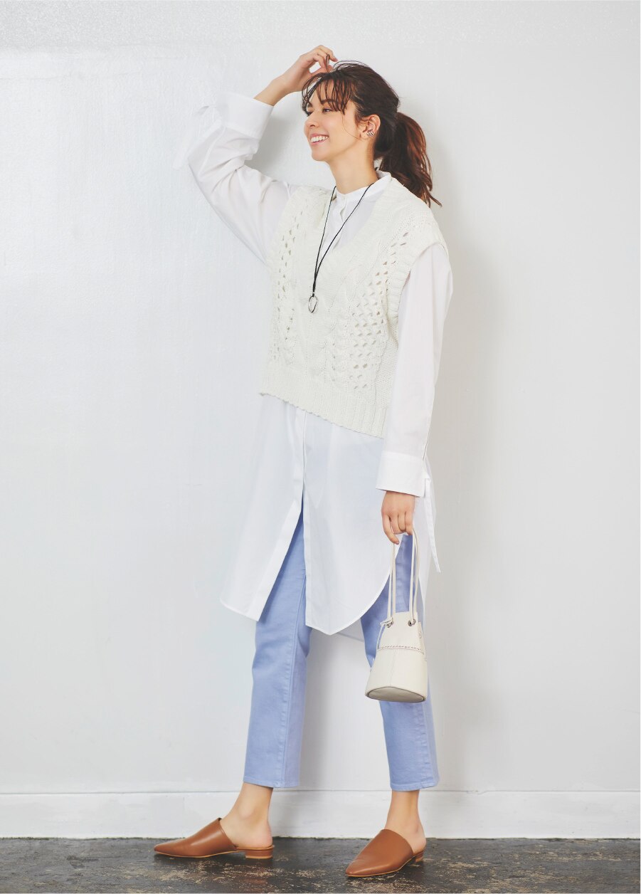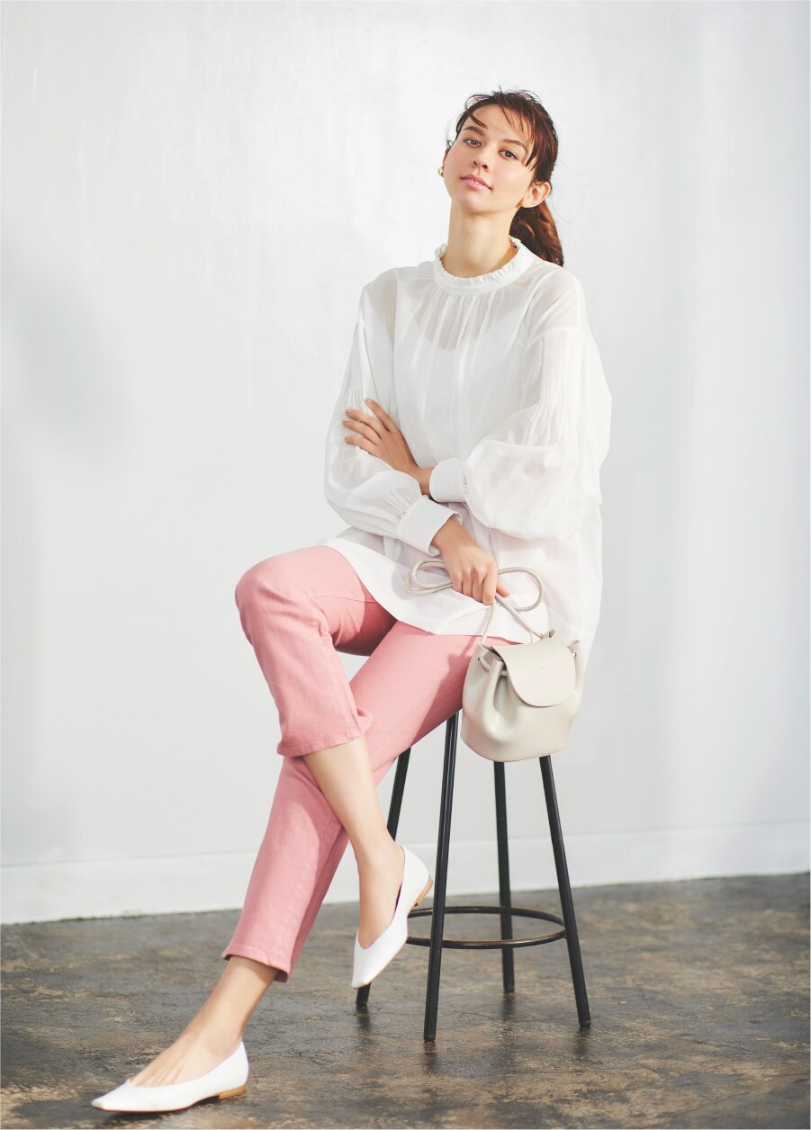 パンツスタイルで大人の顔に。