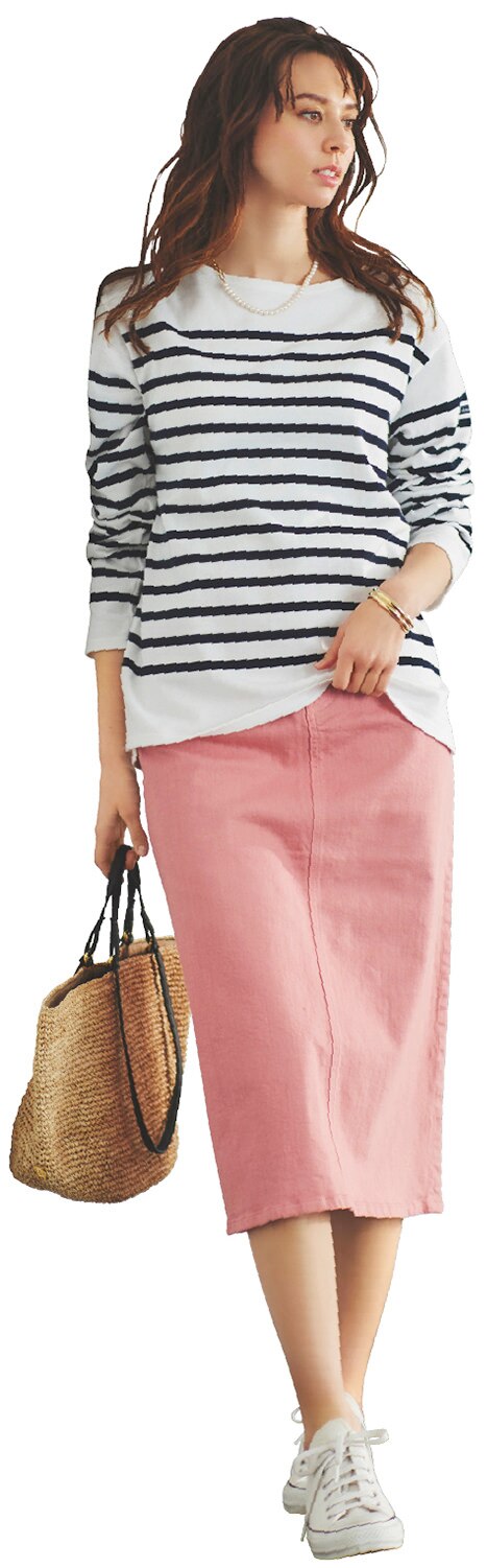 柔らかなピンクをあえてラフに着こなして