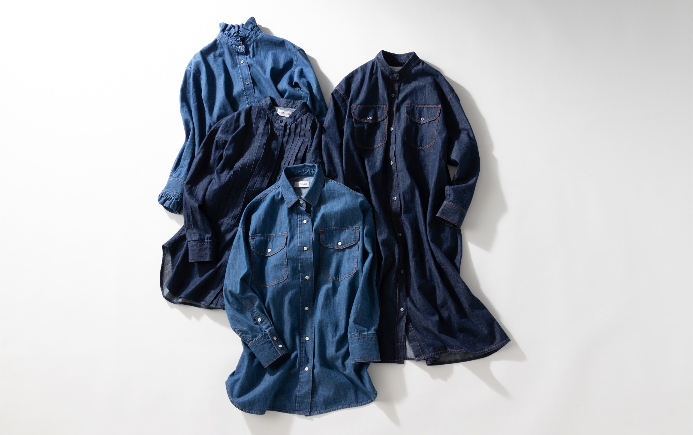 今回ご紹介するのは、カジュアル&リラクシーな今の気分にぴったりなライトウェイトなダンガリー素材の4種類のシャツアイテム。