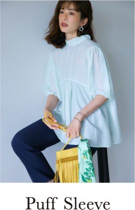 たっぷり膨らむほどロマンティックな今っぽいボリューム袖のエレガントブラウス。エアリーな素材感とアイシーなカラーがフェミニン度をぐっと高めてくれます。高めの位置からの切り替えとヒップ周りをふわっと包むAラインのシルエットで体型カバーもお手のもの。