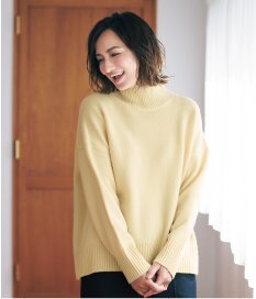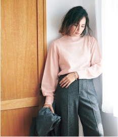 高品質な素材感が肌に触れた時に滑らかさを感じる、フェミニンなシルエットのニット。温かさもありながら、薄手のためジャケットのインナーとしても使いやすく、ウエストINしてももたつかないので、ボトムスを選びません。オフィスやきちんとしたシーンにも活躍しそう。