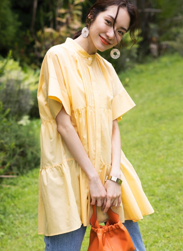 汗ばむ季節に重宝するのは肌にはりつかず、さらりとした着心地の天然素材のブラウス。たっぷりのギャザーが裾に向けて贅沢に広がり、着るだけで華やぐ一枚。軽やかな素材とハンサムなスタンドネックデザインのおかげで、甘すぎず大人が着やすいテイストに。明るく夏らしいカラーブラウスを纏い、これからのサマームードを盛り上げて。