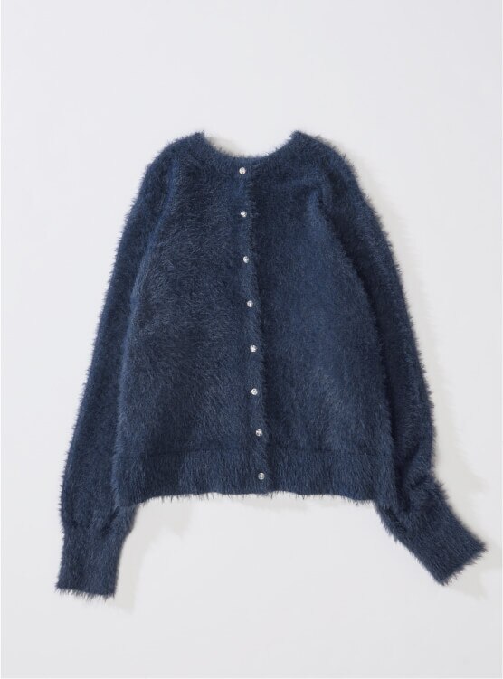 滑らかでふわふわとした質感のヘアリーなニットは、それだけでフェミニンさと大人の可愛げを引き立ててくれるアイテム。ボタンを前にしてカーディガンとしても着られる2wayデザインで、レイヤードにも最適。きらきらした一粒ビシューのボタンがさりげなく華やかさを添えてくれます。