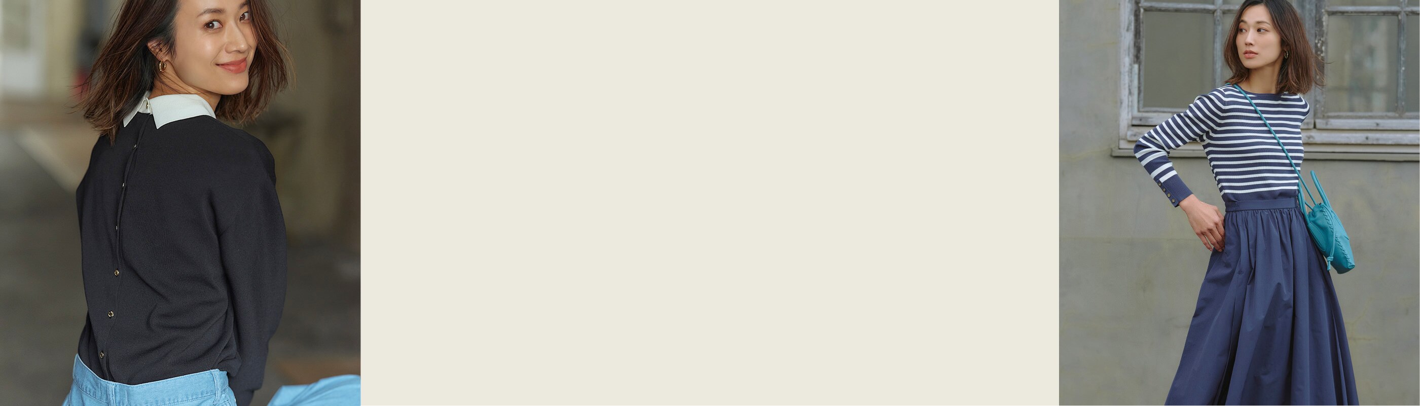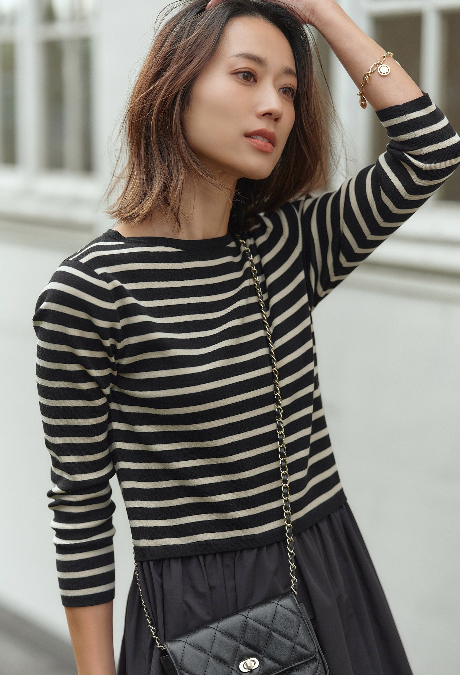 ベージュ×ブラックボーダーは大人にこそ似合う配色カラー。