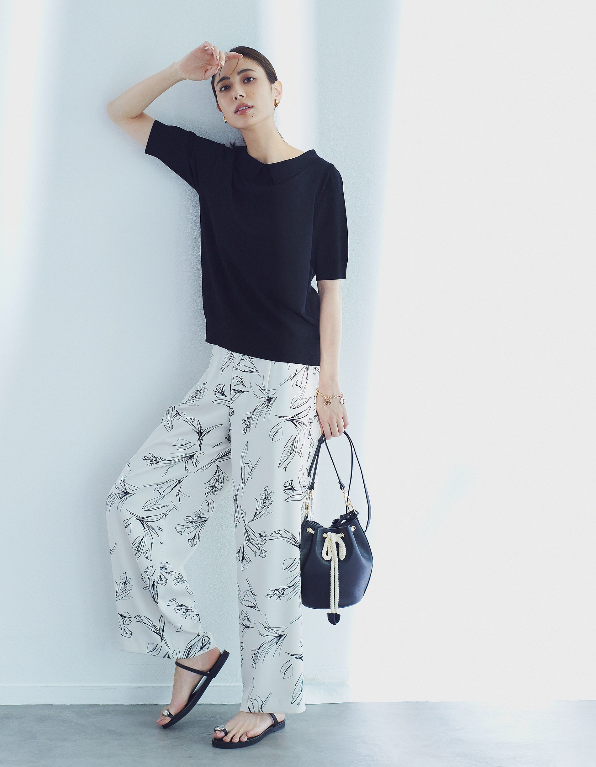 あえてシンプルなボトムと合わせて