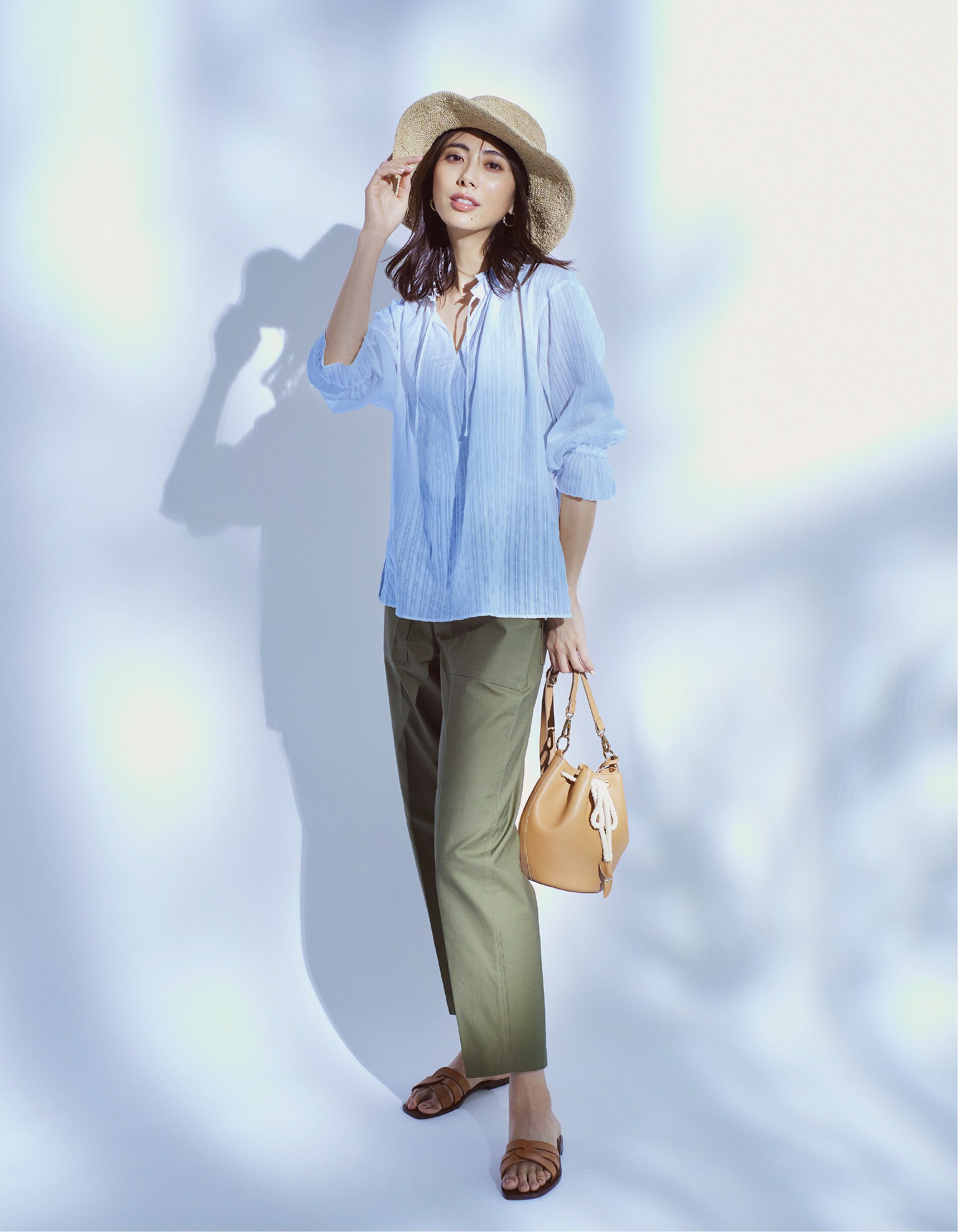 軽やかな素材のブラウスは