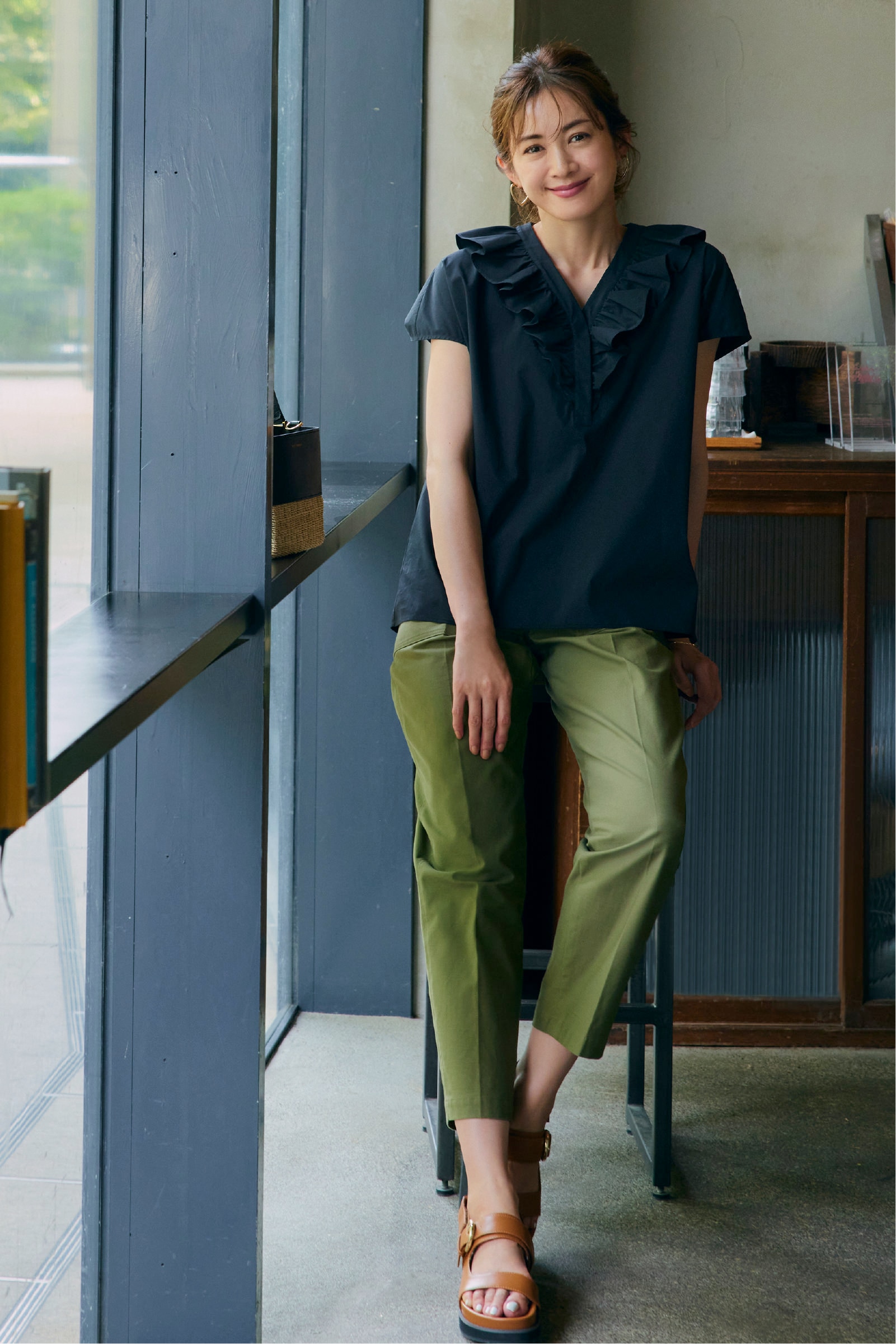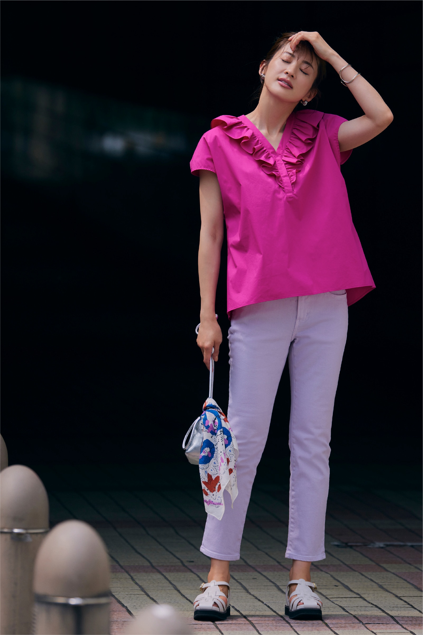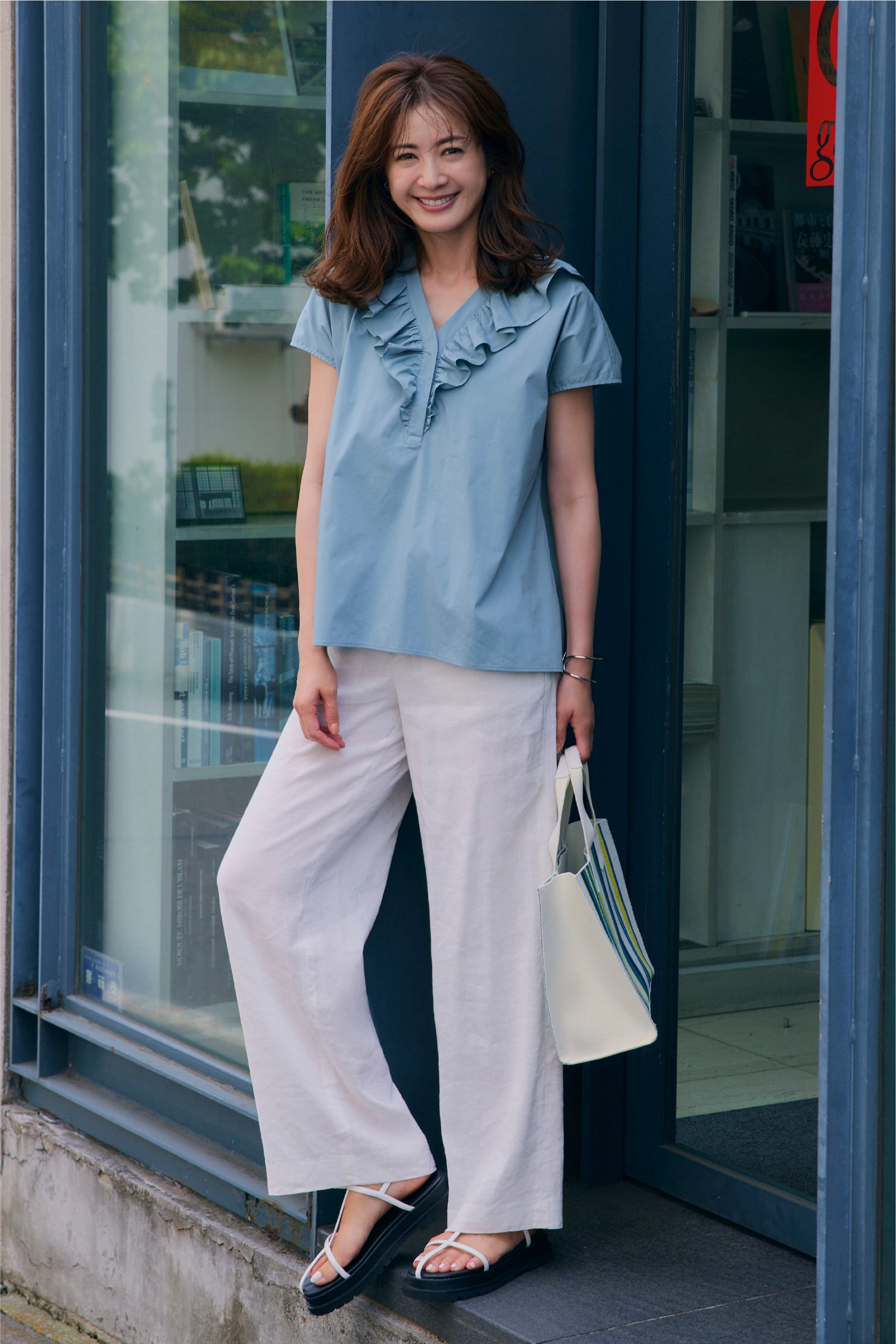 女っぷりブラウス×カジュアルパンツの掛け算が