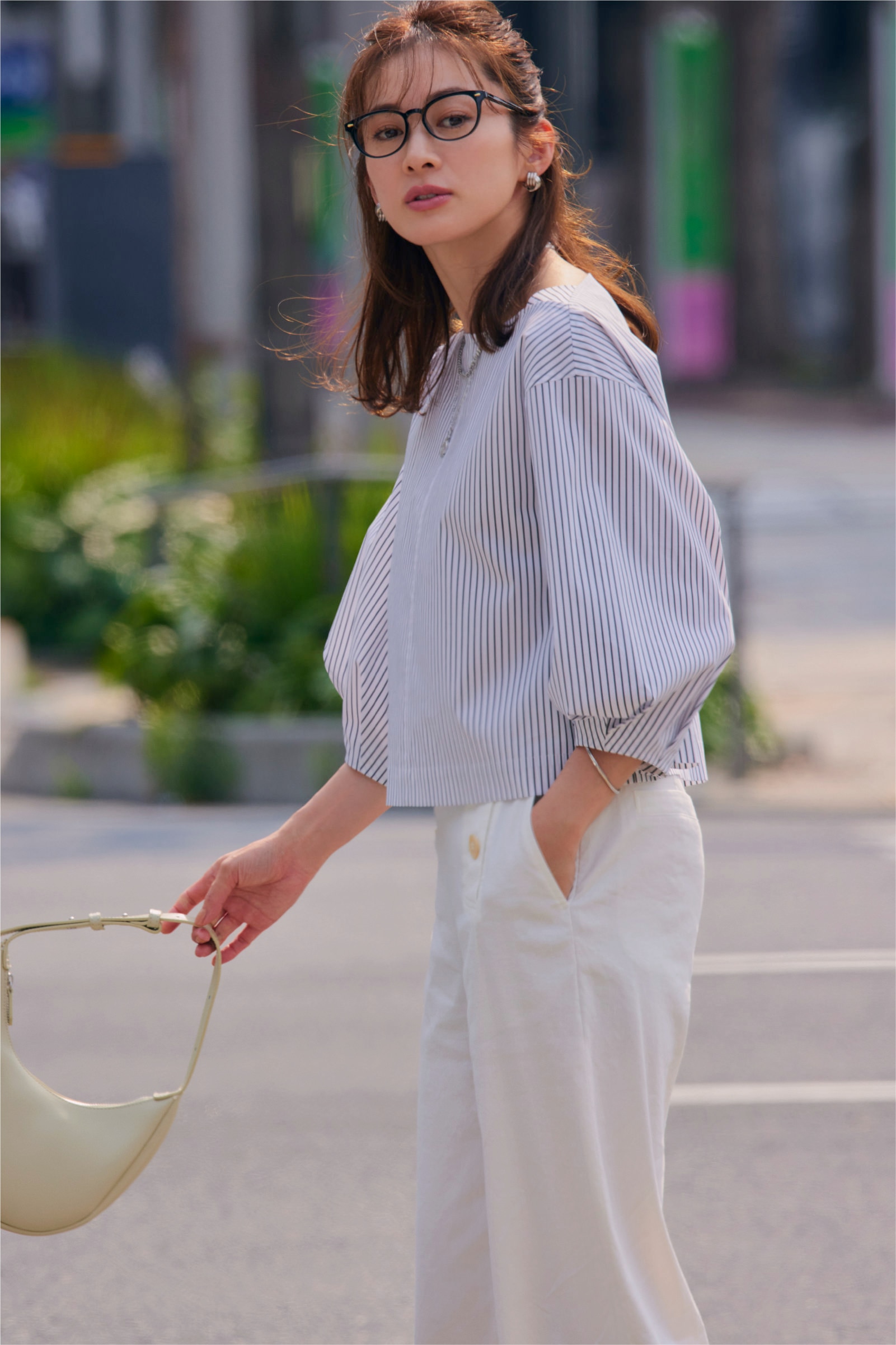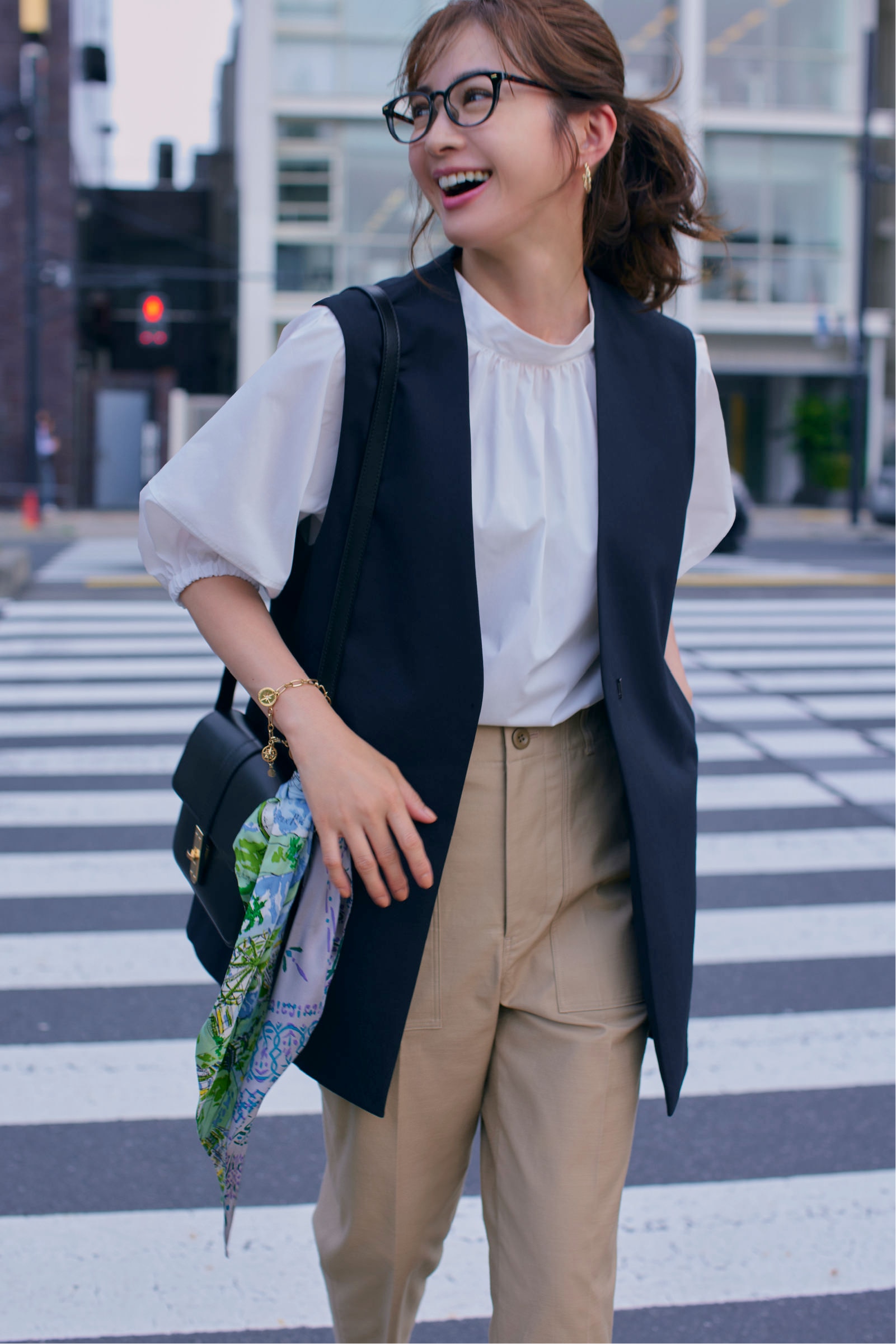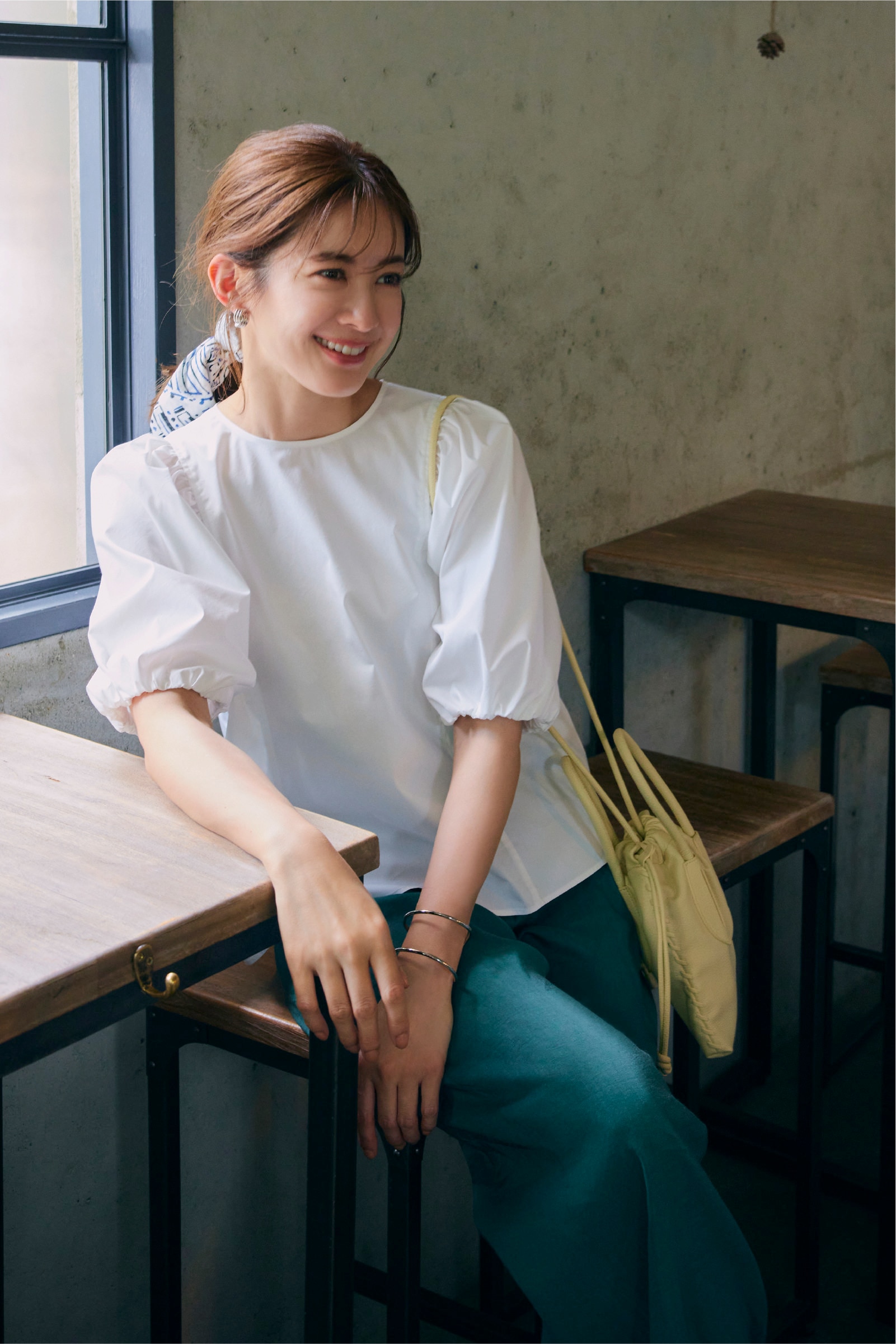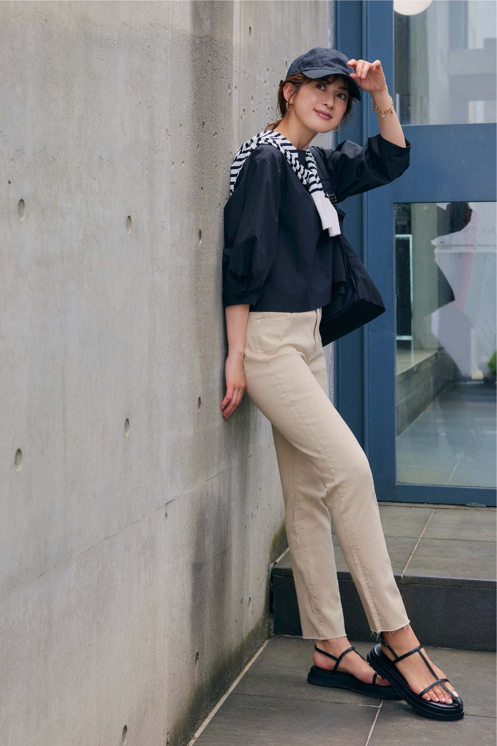 女っぷりブラウス×カジュアルパンツの掛け算が
