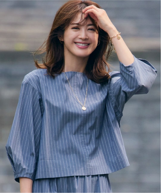 主張し過ぎないストライプ柄がワントーンコーデを格上げしてくれます。