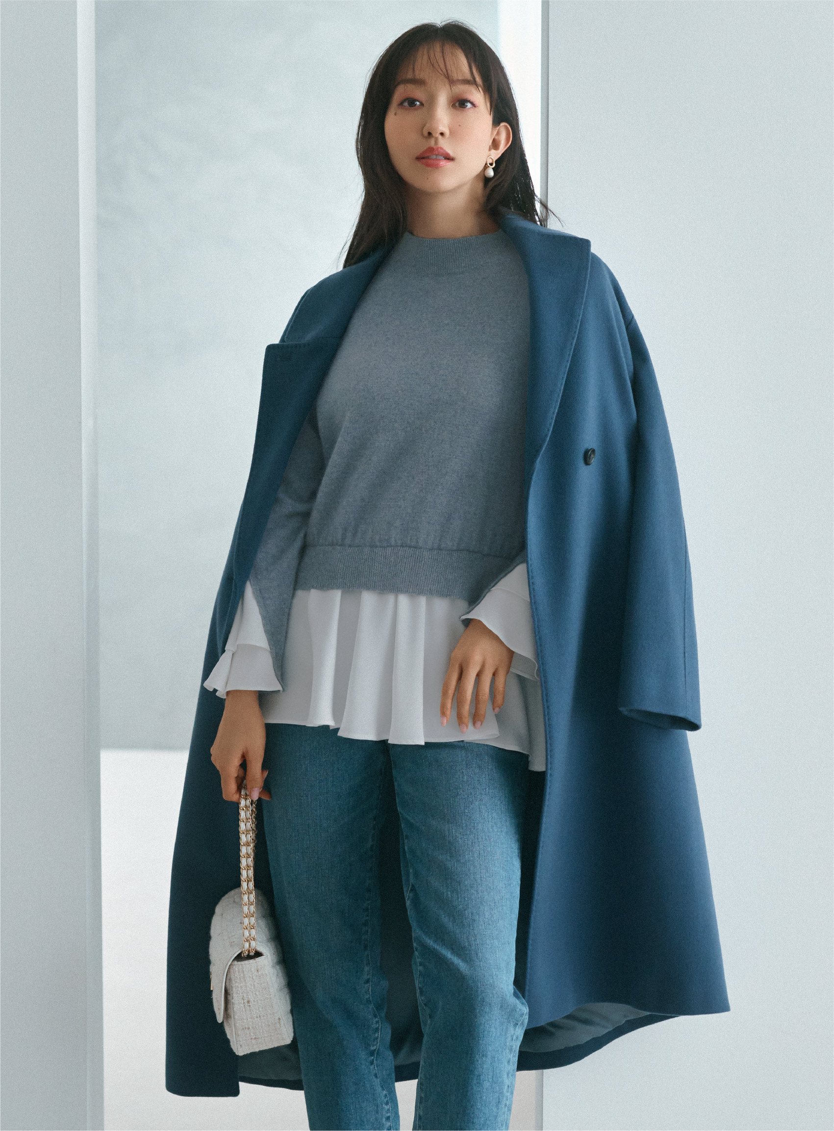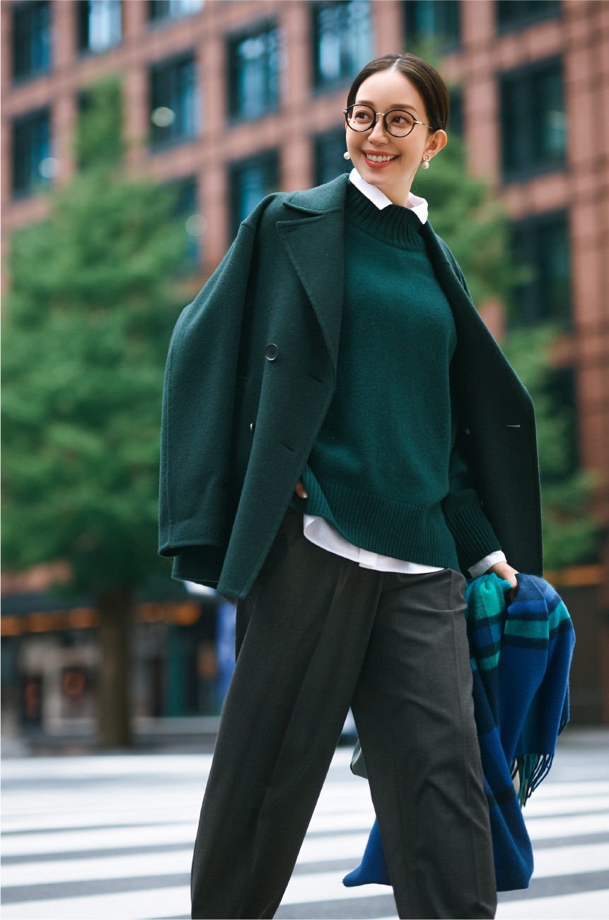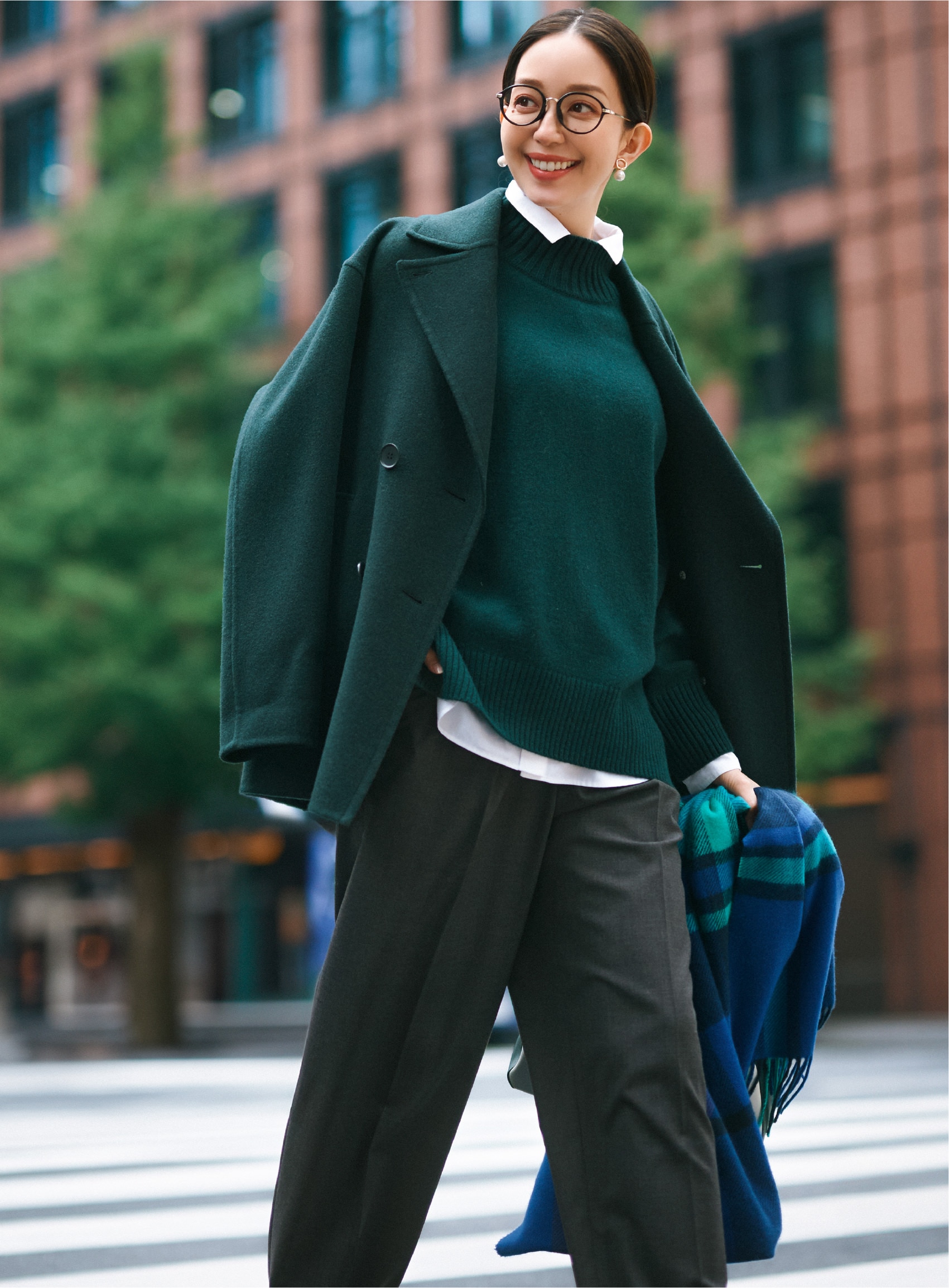 冬も終わりが近づいてくる季節にはカラーアイテムで気分を切り替えたい。深い色味にすればオフィスでも浮かずに楽しめるはず。カシミヤがブレンドされているから暖かさはおさえつつ、いつもとは違う空気感を楽しんで。