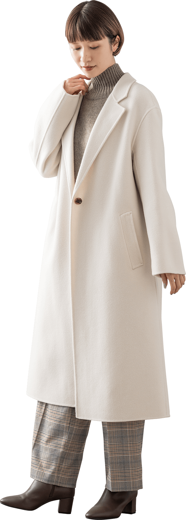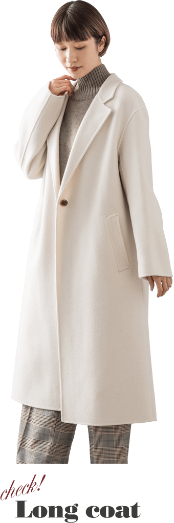 ゆったりとした優雅なシルエットのロングチェスター。幅広いシーンで活躍な予感。大人の上品コーデの仕上げに取り入れてみて。