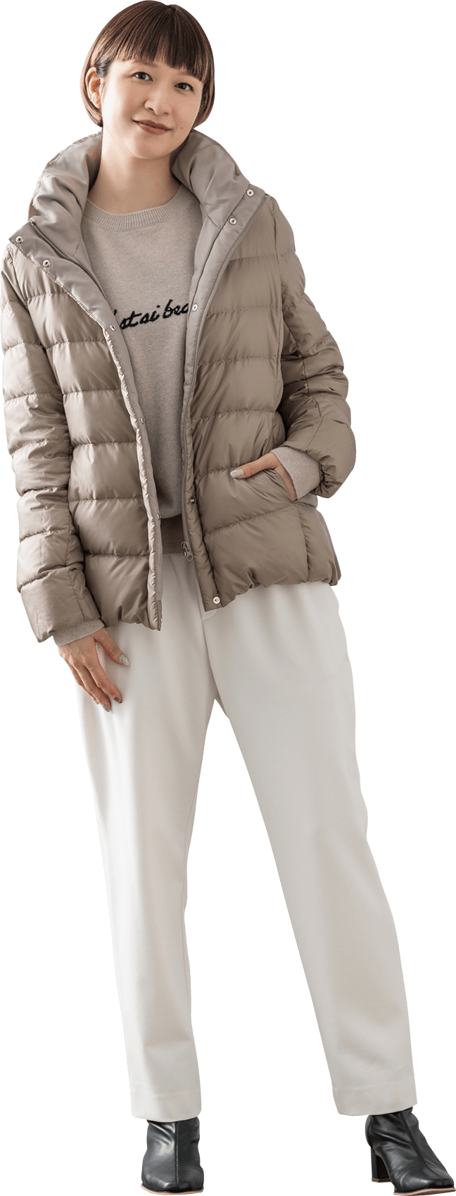 王道なショートダウンがやっぱり使いやすい。冬のカジュアルにぴったりな悩まない1枚。さっと羽織るだけでナチュラルでベーシックな印象に。