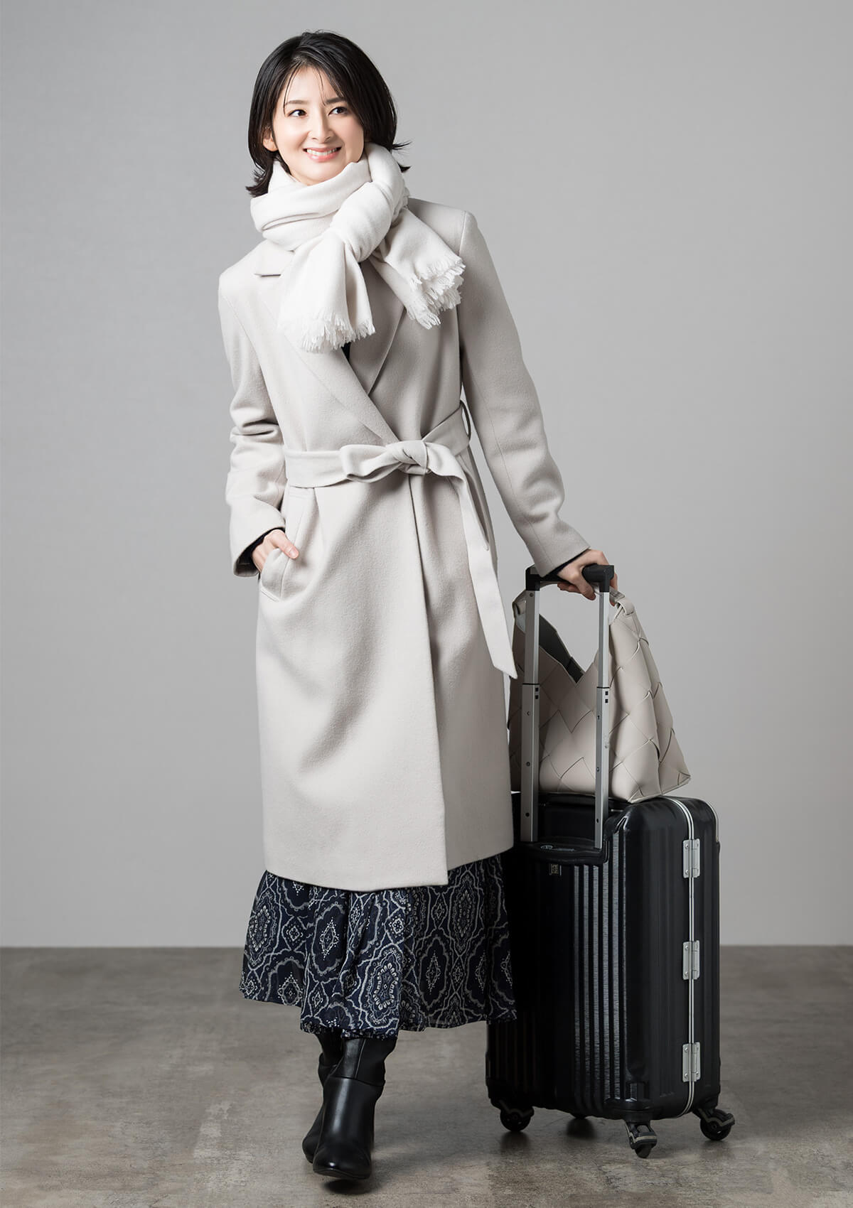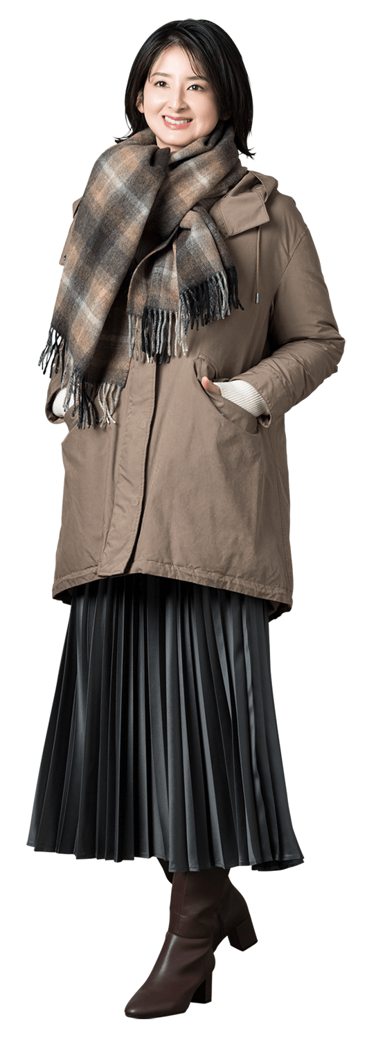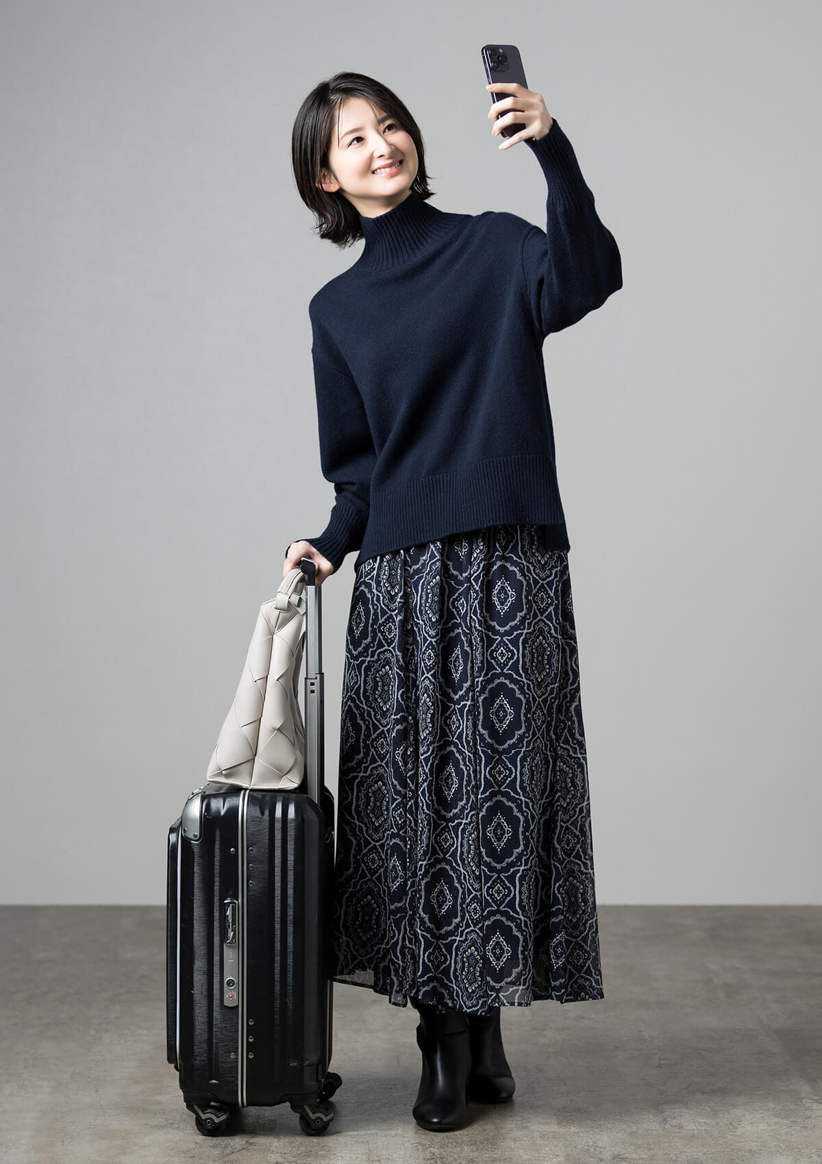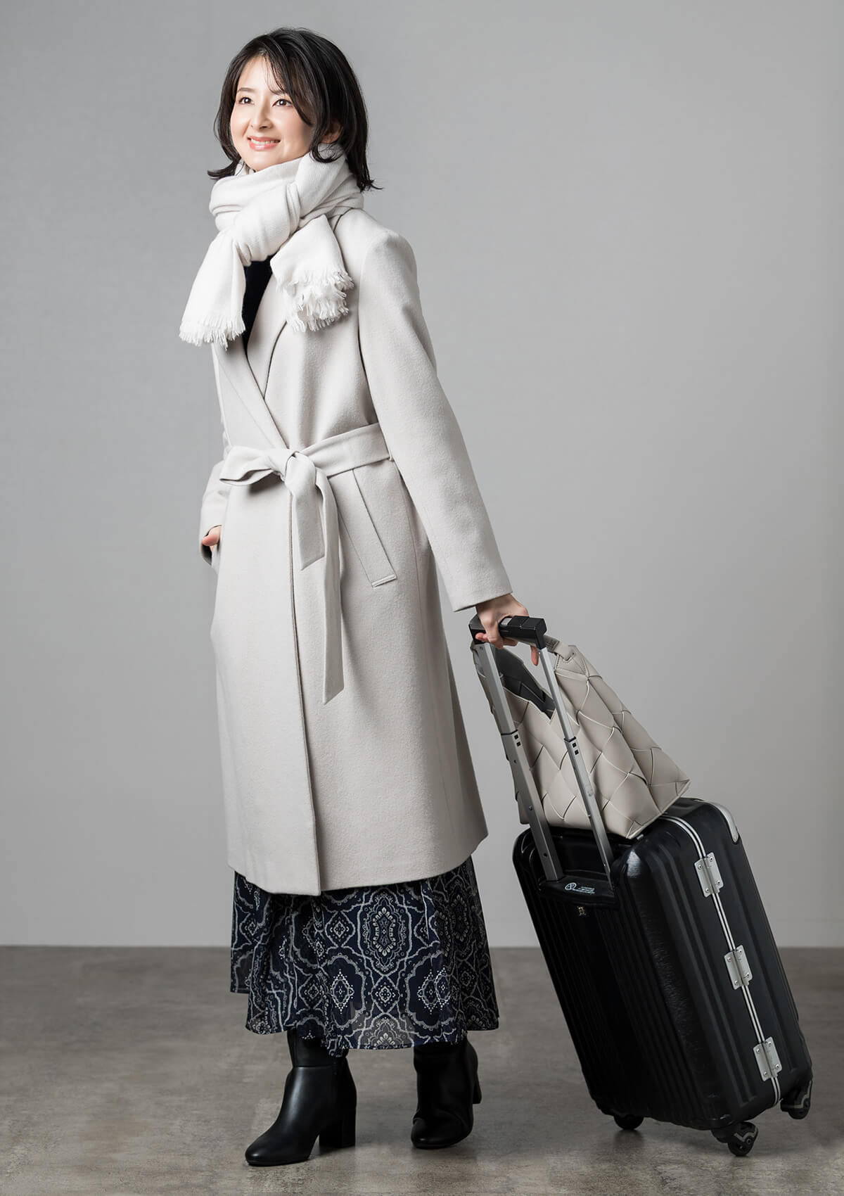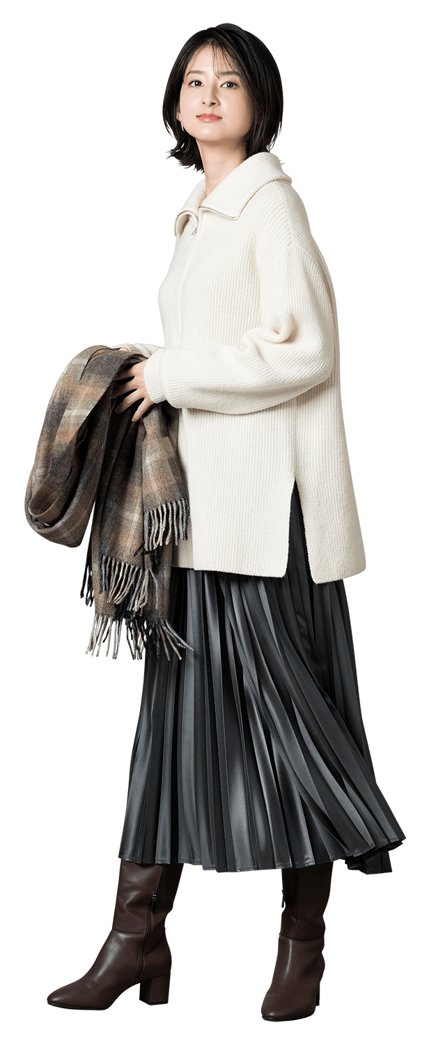 帰り道に感じる冷たい風も、 心を満たす再会のあたたかさに変わる。 ニットやコートでやさしく包み込む冬の帰省スタイル。