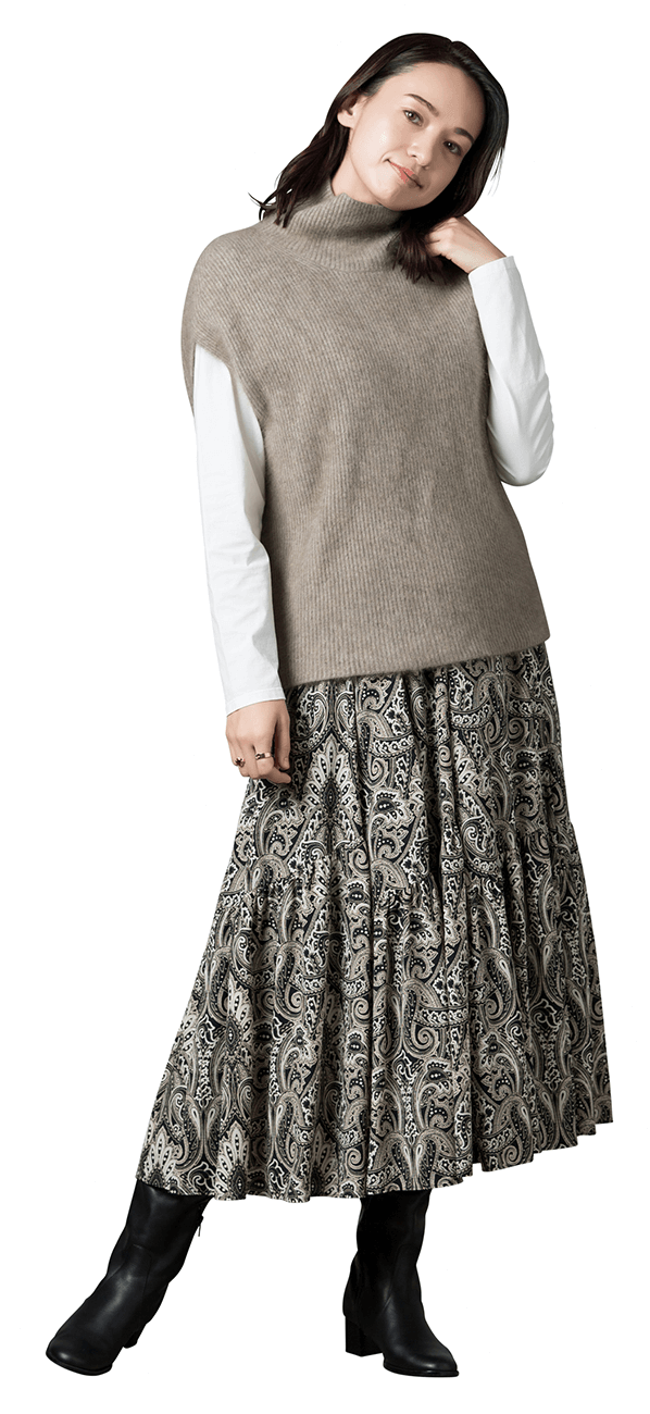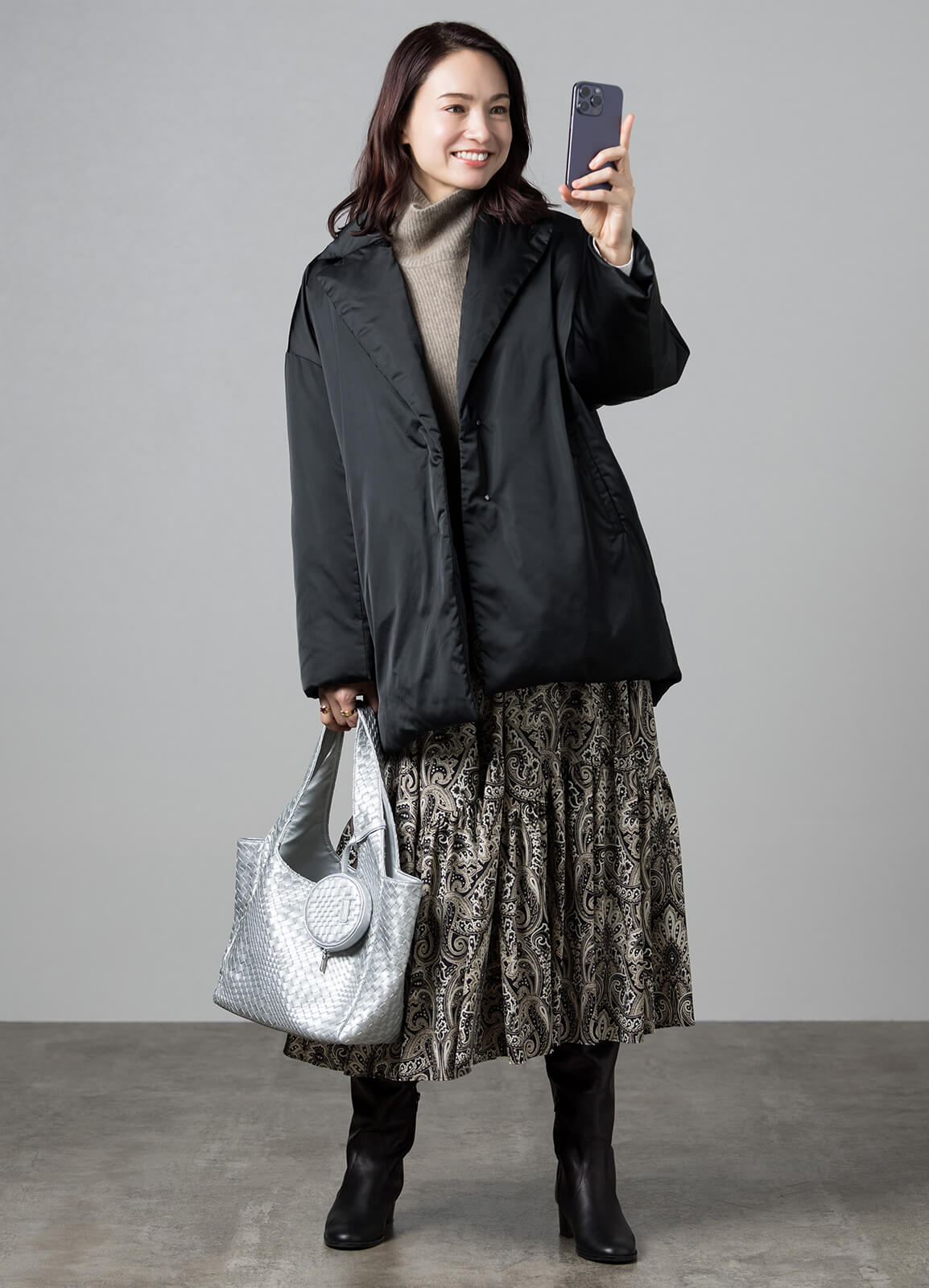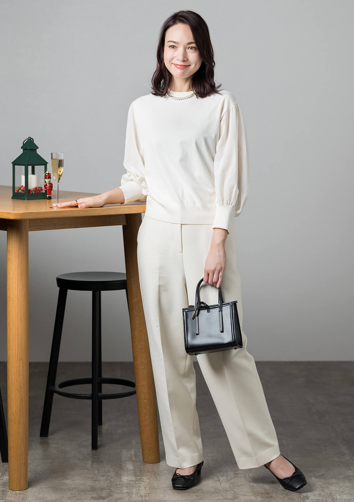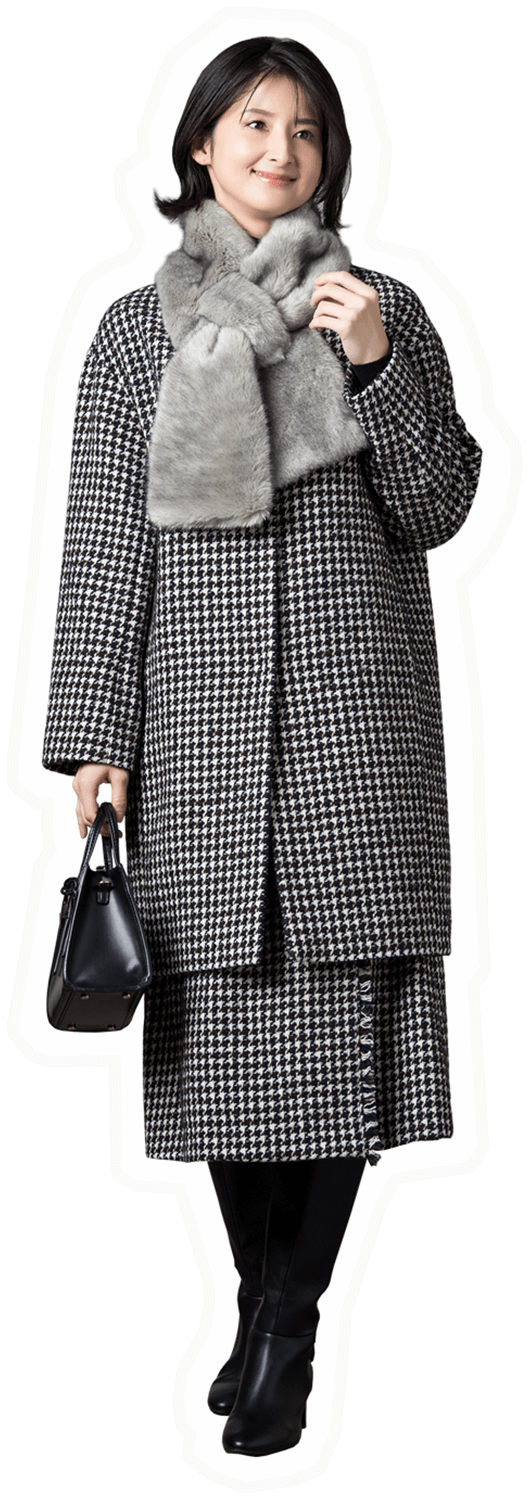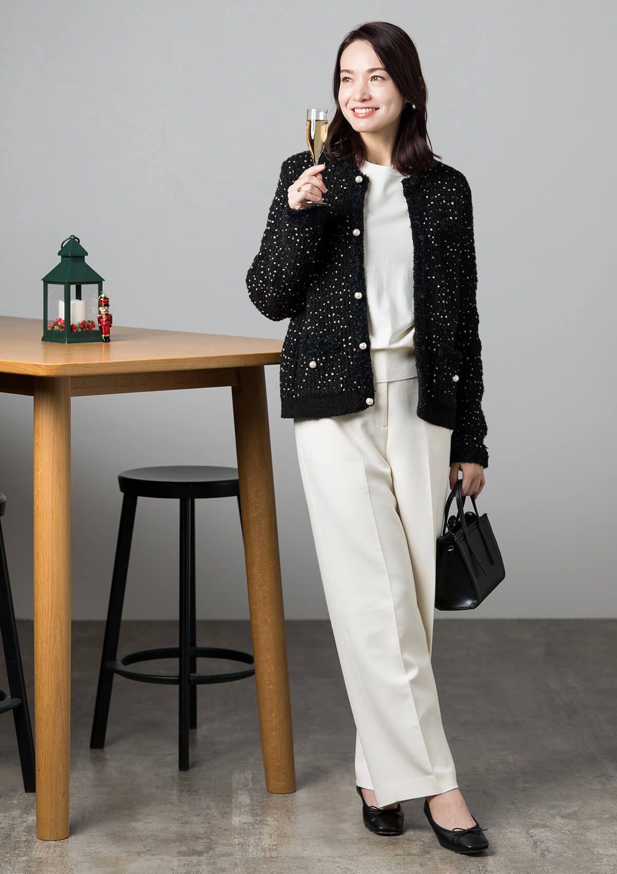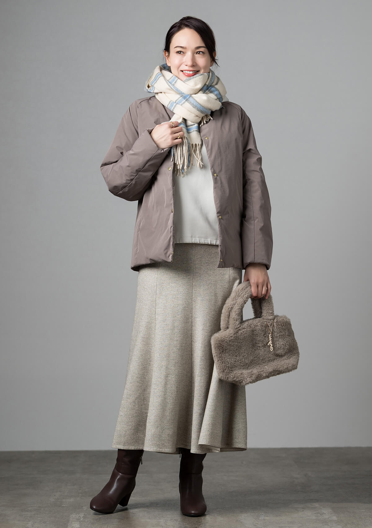 帰り道に感じる冷たい風も、 心を満たす再会のあたたかさに変わる。 ニットやコートでやさしく包み込む冬の帰省スタイル。