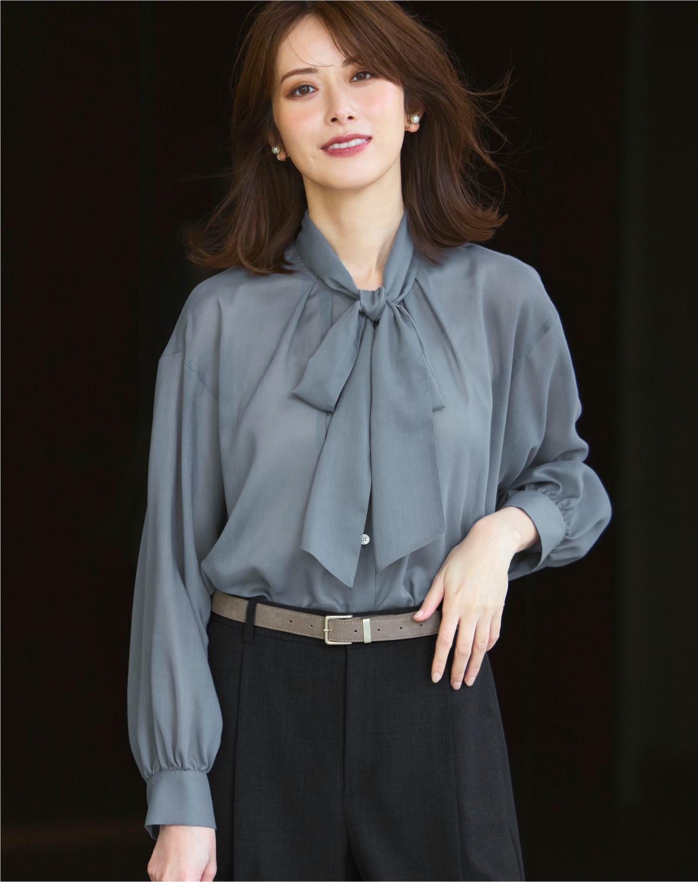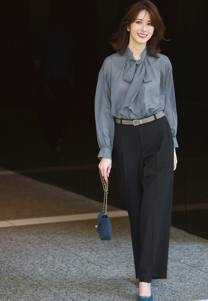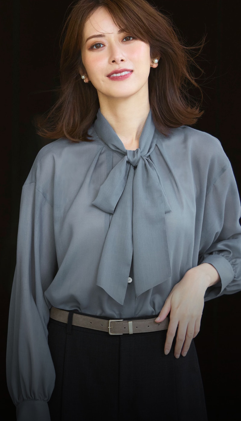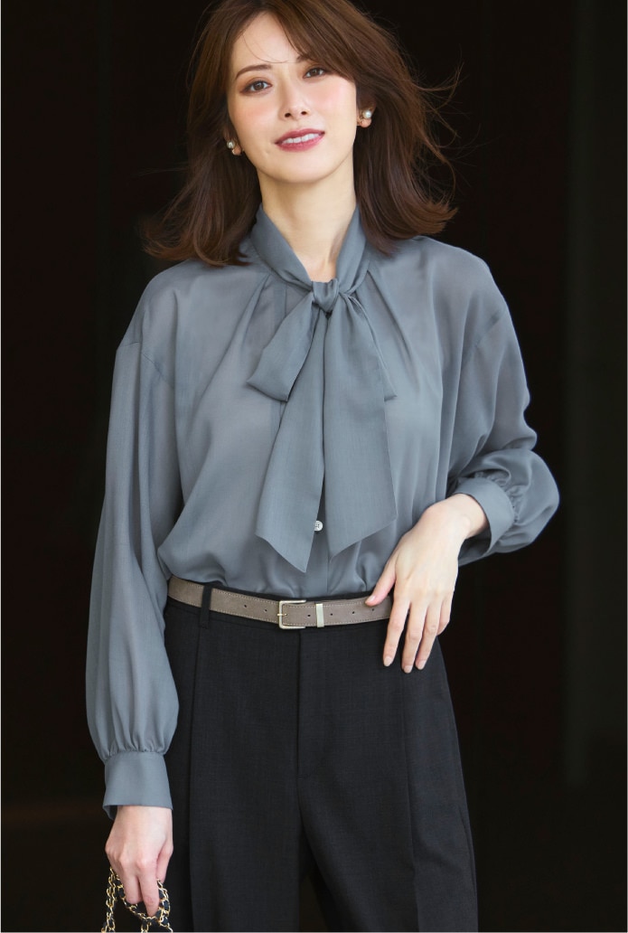 クラシック回帰を象徴するリボンタイブラウス。