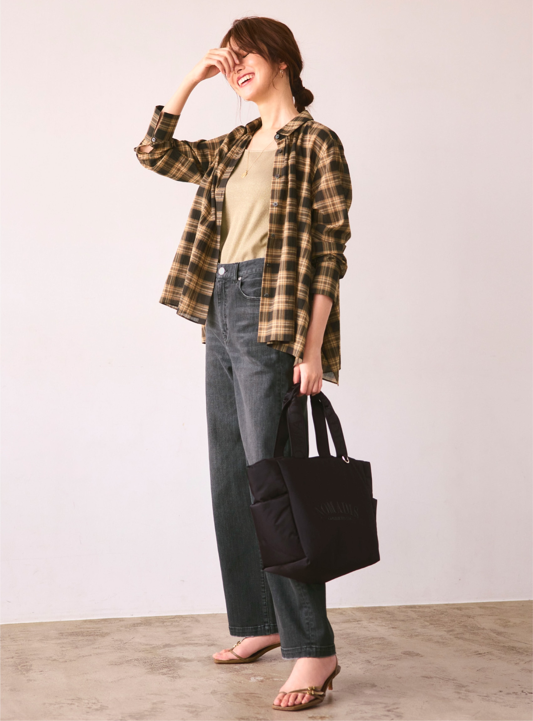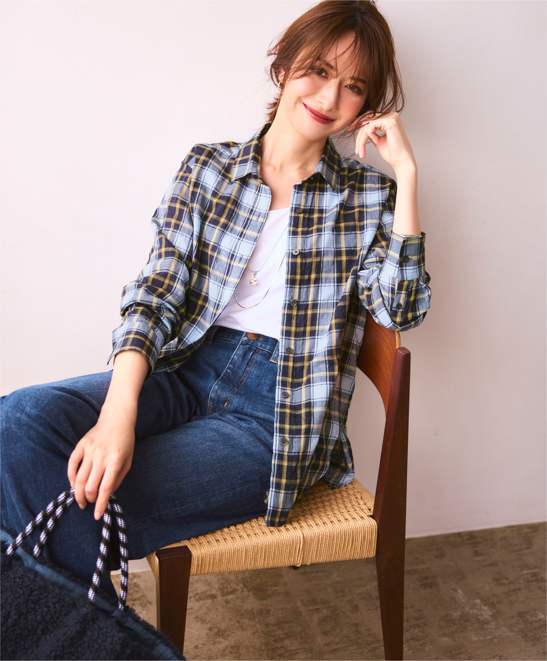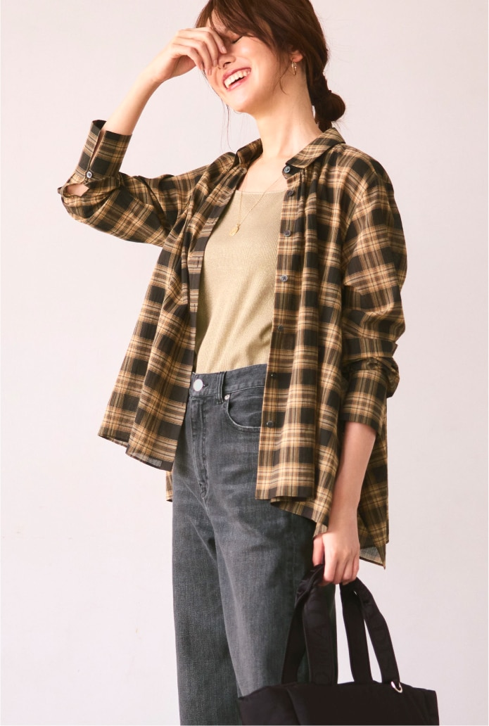 チェック柄シャツに注目。