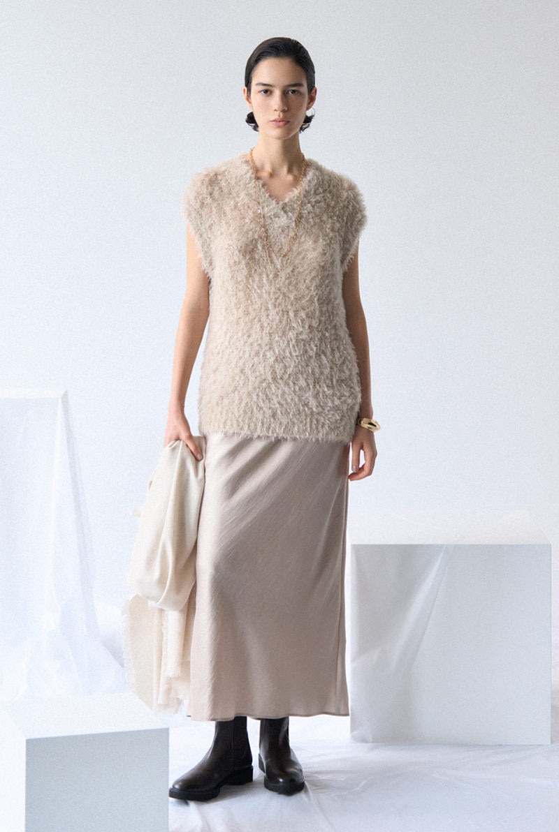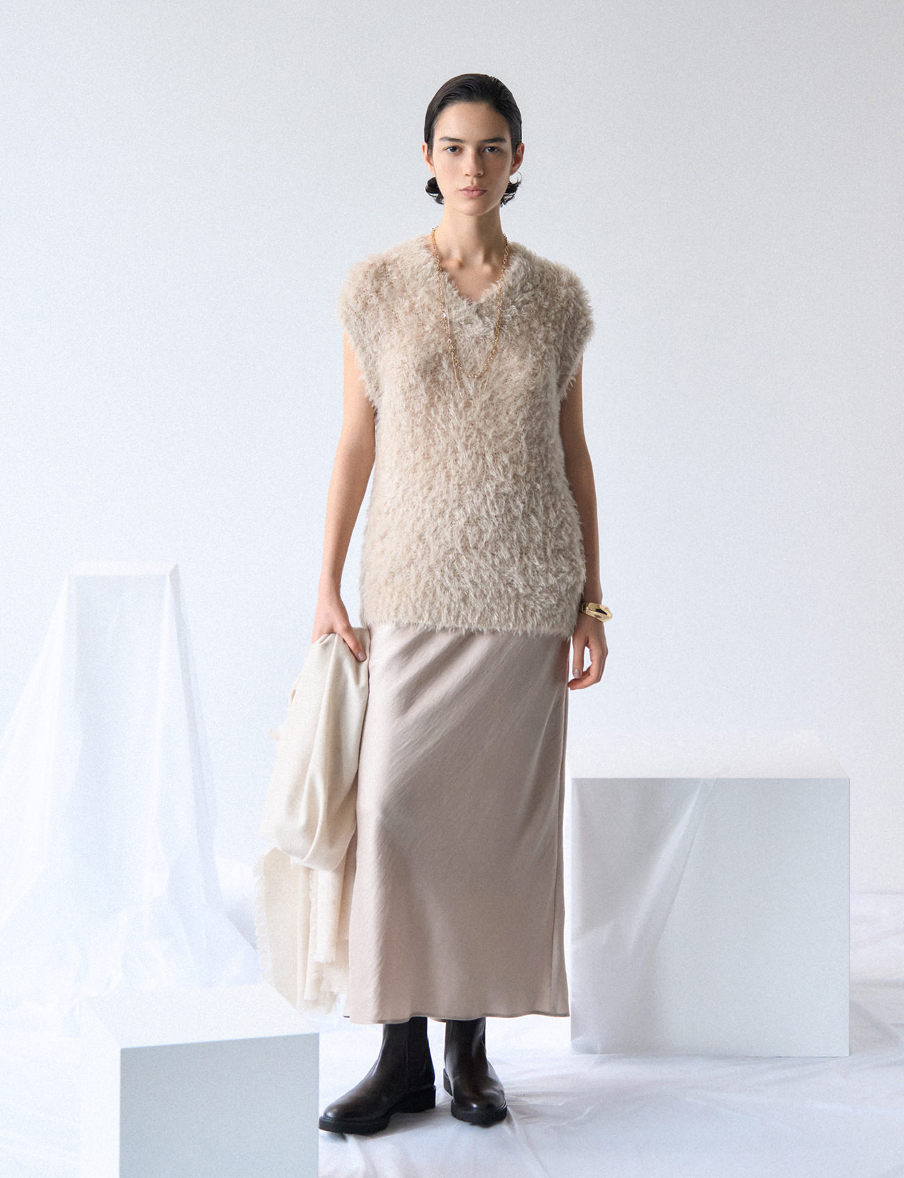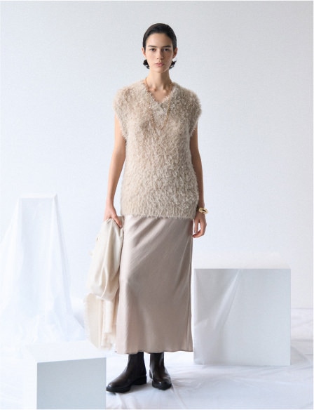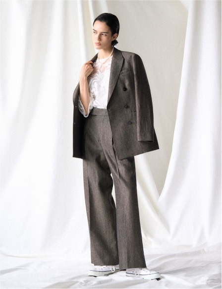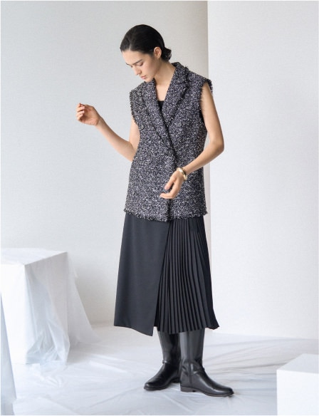 大人の女性の多彩なライフシーンをスマートに彩る、新レーベルが誕生。上質素材の心地よさを知り、素材の“分量感”にこそリッチさを感じる女性。オフホワイトやベージュを品よく着こなし、ブラックを自分らしく楽しむ女性。シンプルをベースに、デザイン性のあるアイテムも自在に着こなす―そんな洗練された大人のためのコレクションです。