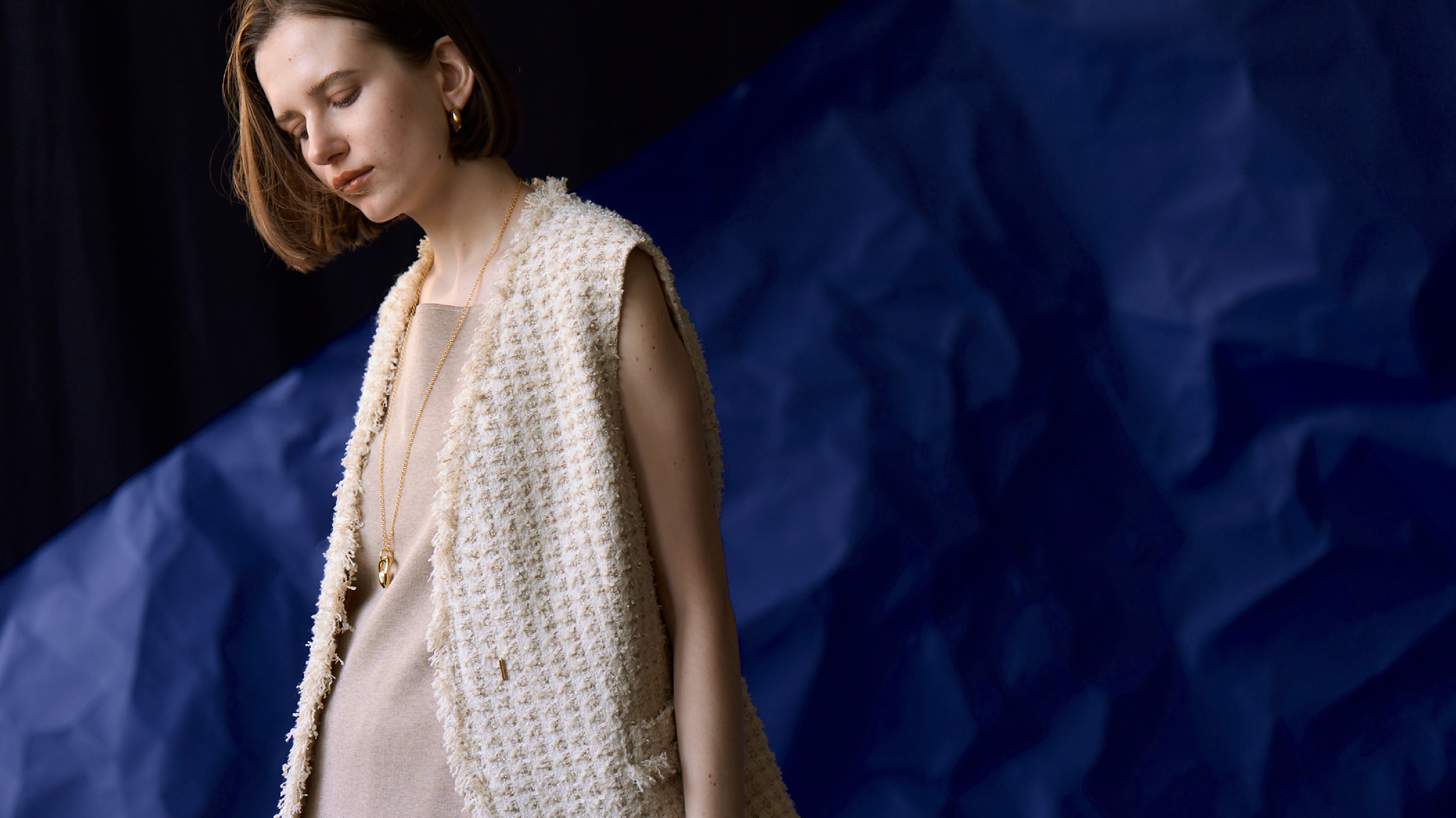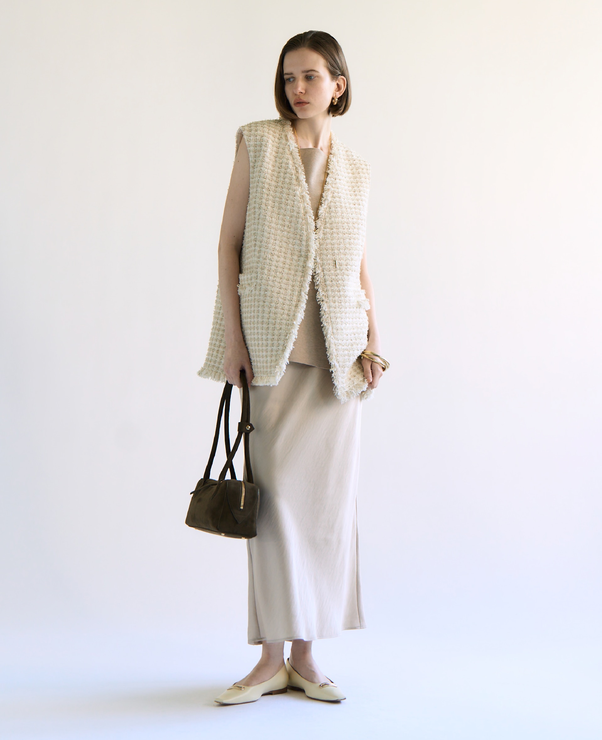 Imparfait / 未完成、整い過ぎていない気候の変化によって四季の価値観が変わり、日々のスタイルはどこか不完全でちぐはぐ。早く秋の気分を取り入れたいのに、体感は追いつかない。だからこそ、セオリーに縛られずもっと自由な装いで。調和よりも質感のコントラストや心地よさを意識して。