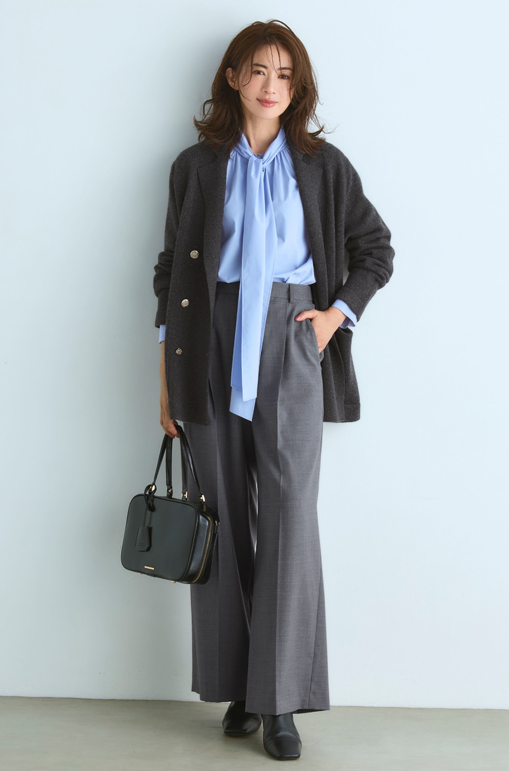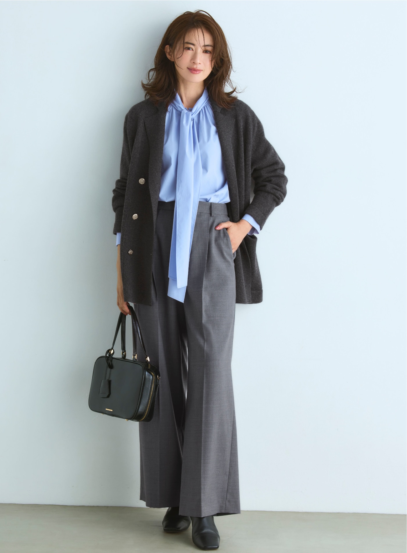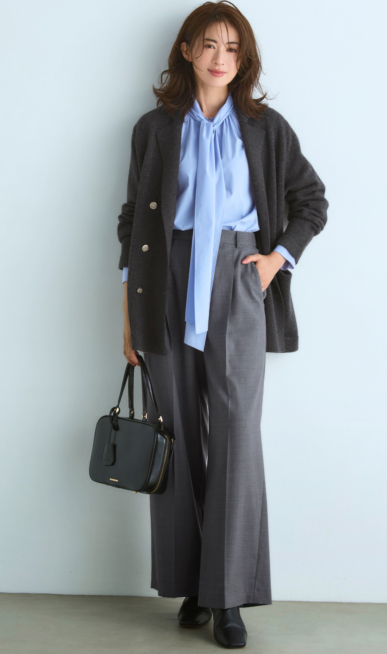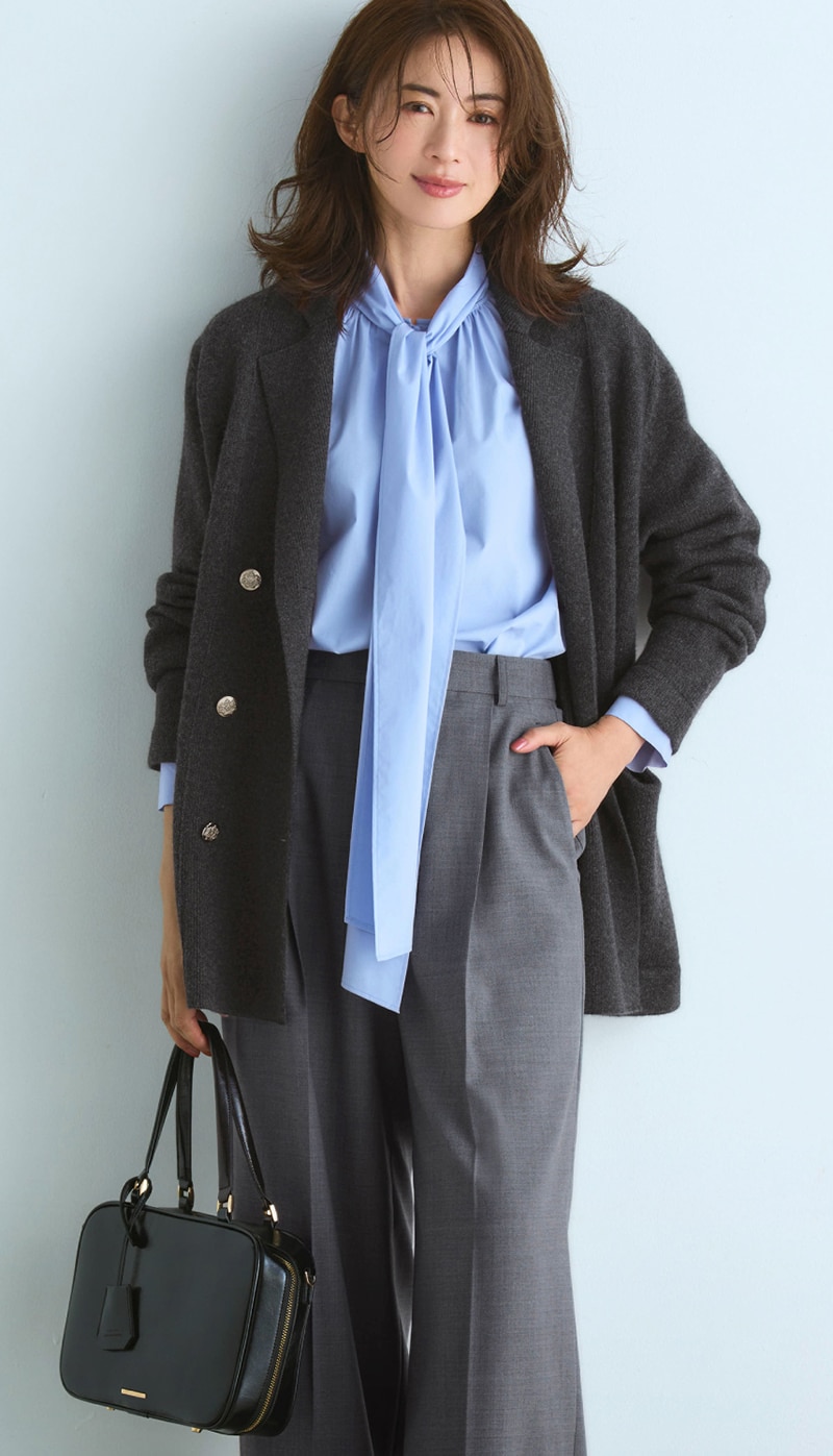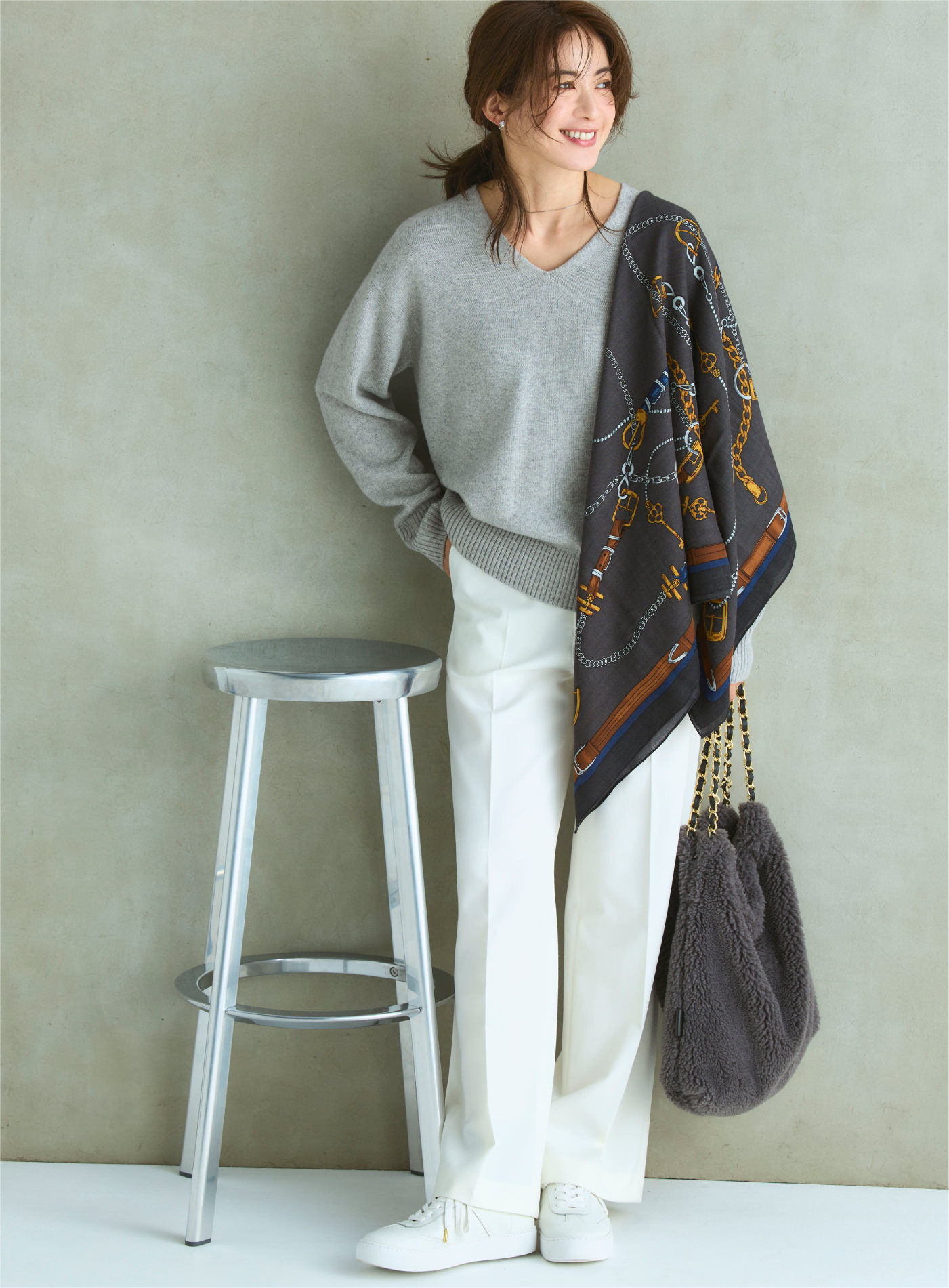 どんなスタイルにも馴染む上品なグレーの濃淡に、