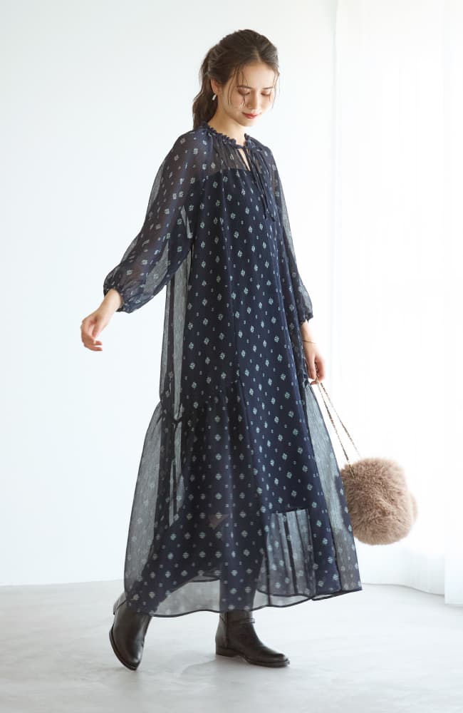 半袖ワンピは、 晩夏~初秋の