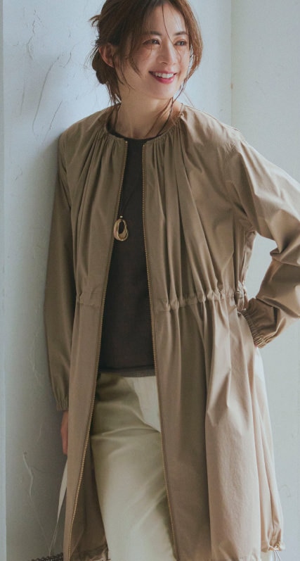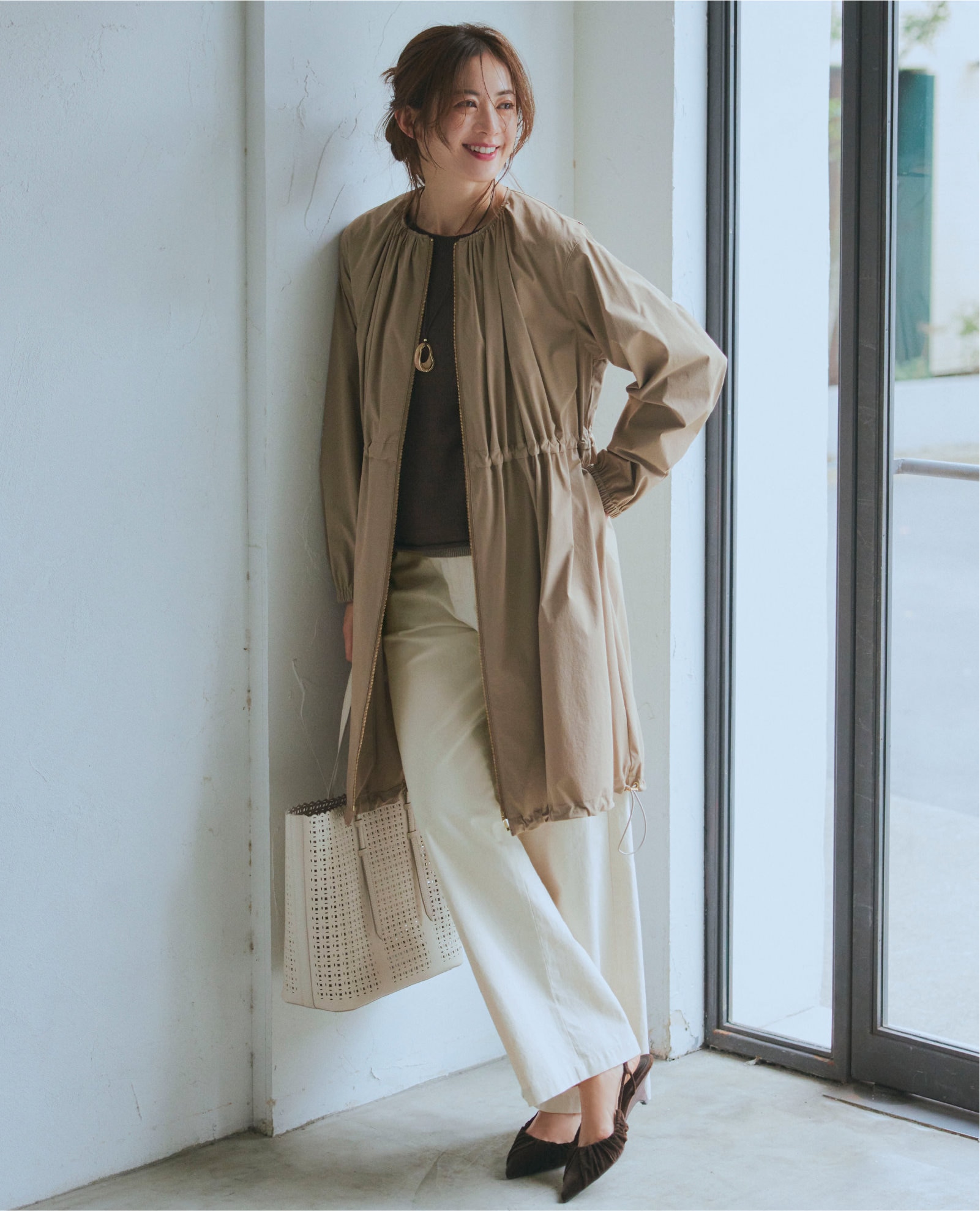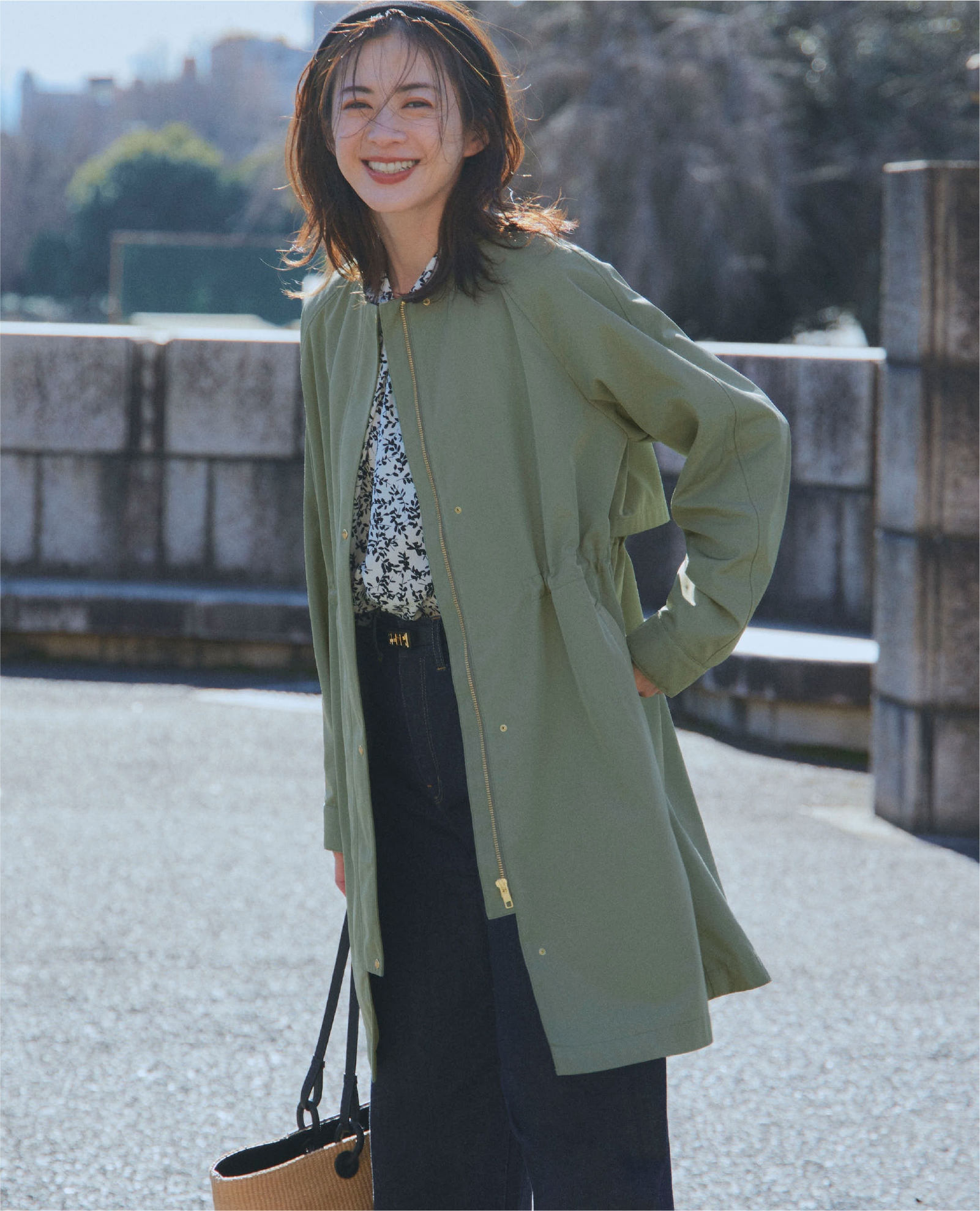 まろやかでナチュラルな色味のベージュは春の鉄板カラー。トレンチをシャツ×デニムのカジュアルダウンで楽しんで。