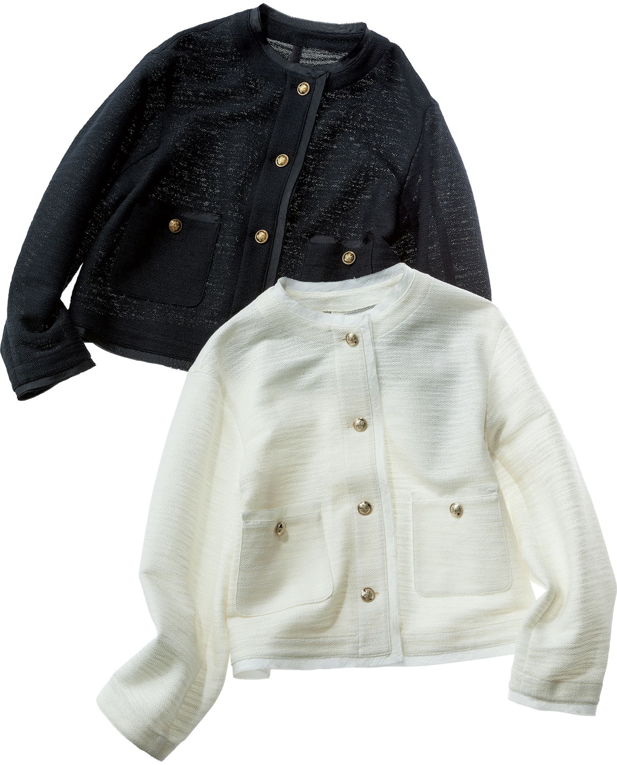 シックにかっこよく着られるブラックと華やかな季節感が漂うホワイト。頼れるベーシックカラーの2色を展開。